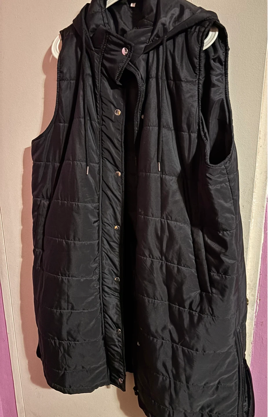 Buy & SellBlack Puffer Vest with HoodBlack Puffer Vest with Hood$20This black puffer vest is quilted and has a hood. It's a great layering piece for cooler weather! It features a zip-up front and pockets.ConditionLike newSize2xlWHERE TO MEETCheck LocationView MapSELLERverifiedAshWishing Well Acres38030 reviews1 chats·0 favorites·4 viewsSEND CHAT TO SELLERHi Ash! I’m interested in your listing.Hi Ash! I’m interested in your listing.Get the Karrot app to chatSign In to chat