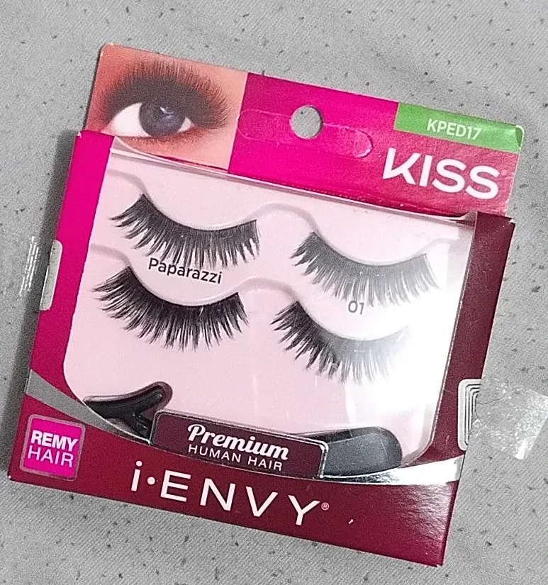 Brand new i.ENVY Paparazzi false eyelashes made with premium human hair. This package includes a black applicator tool for easy application. They're designed for a natural yet dramatic look.