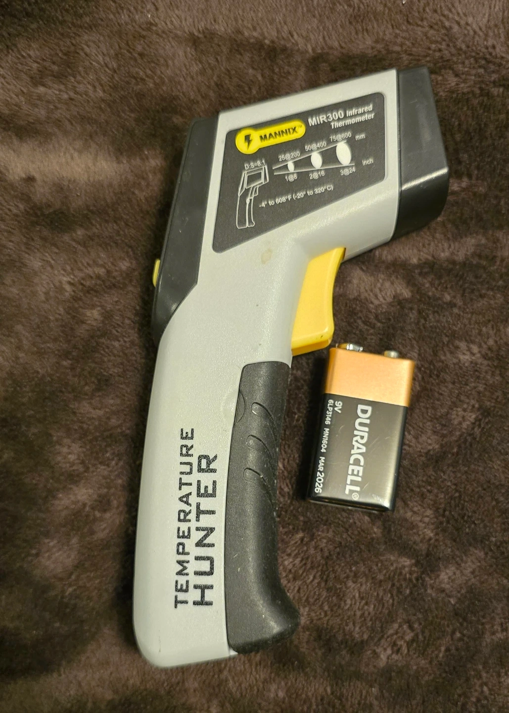Selling a Mannix MIR300 infrared thermometer. It's a Temperature Hunter! It can measure temperatures from -4° to 608°F (-20° to 320°C). /