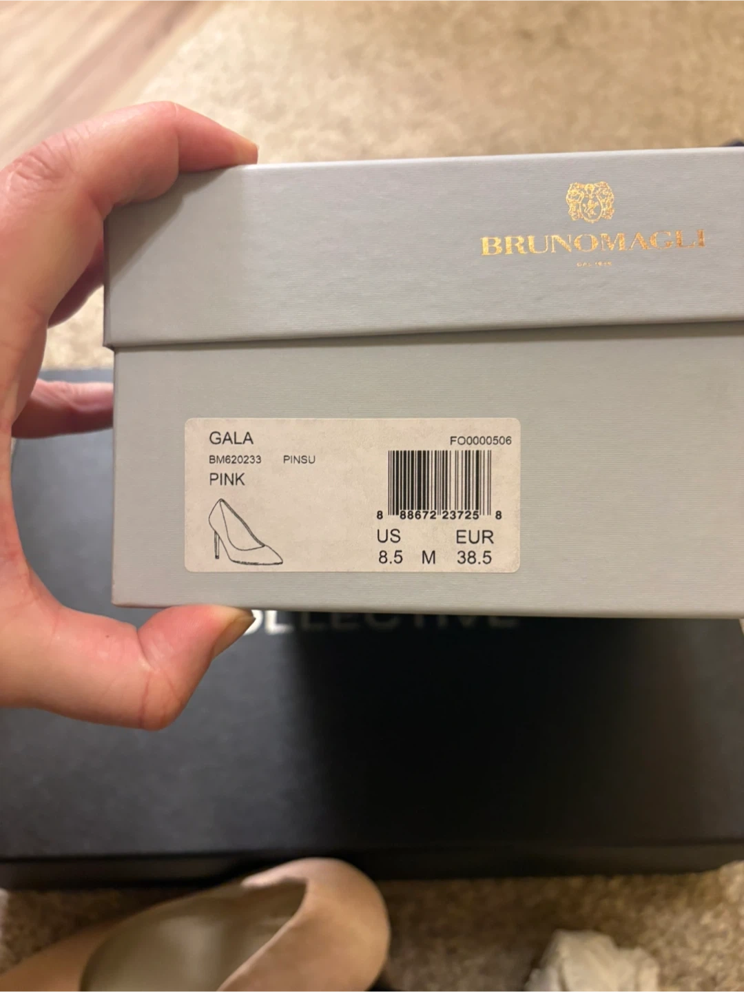 Selling a pair of Bruno Magli Gala heels in pink, size 8.5 US. These stylish heels come with the original box!