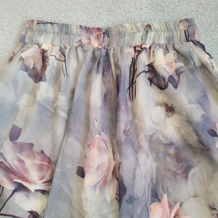 Lightweight high-waisted culottes. Elastic waistband. Floral print. Flowy fabric. Great for spring and summer.