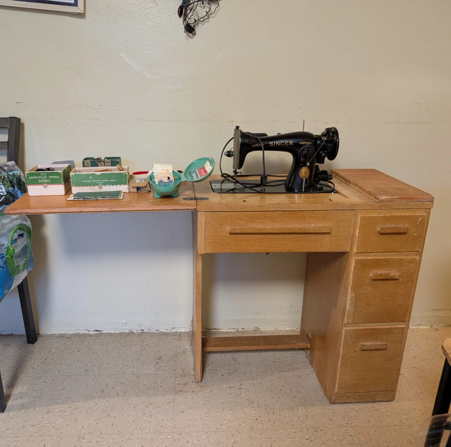 Vintage Singer Sewing Machine w/ Original Cabinet & Accessories