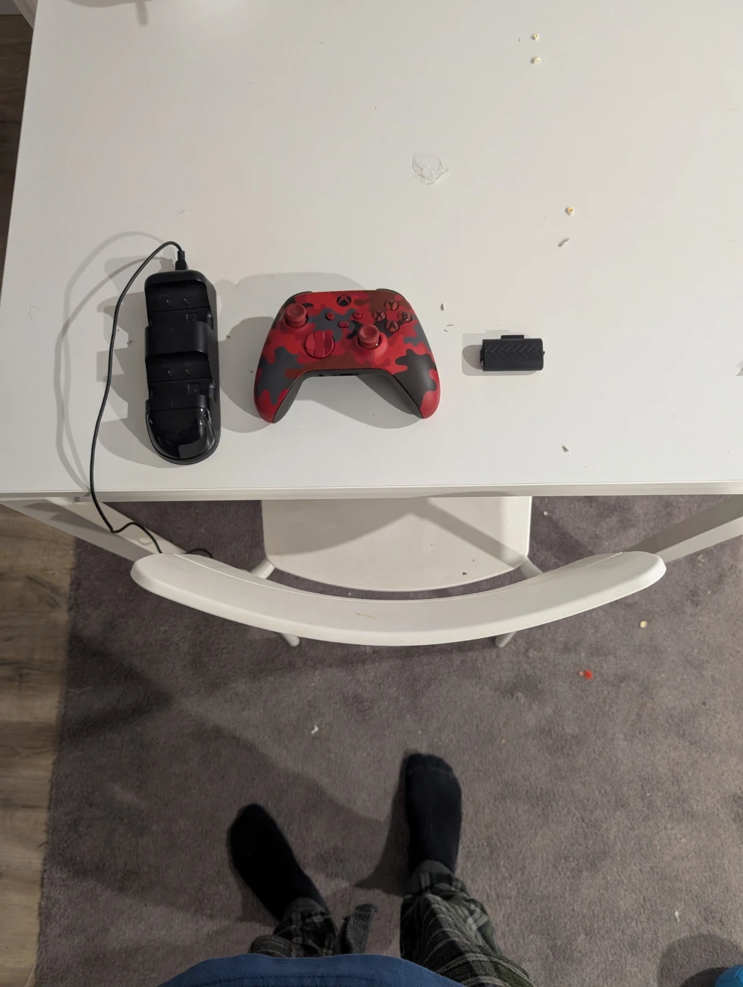 Selling an Xbox one wireless controller in a red camo design it also works with a Xbox series s It's in great condition and ready for a new gamer! It comes with a charger and battery pack all buttons are functional and in excellent condition