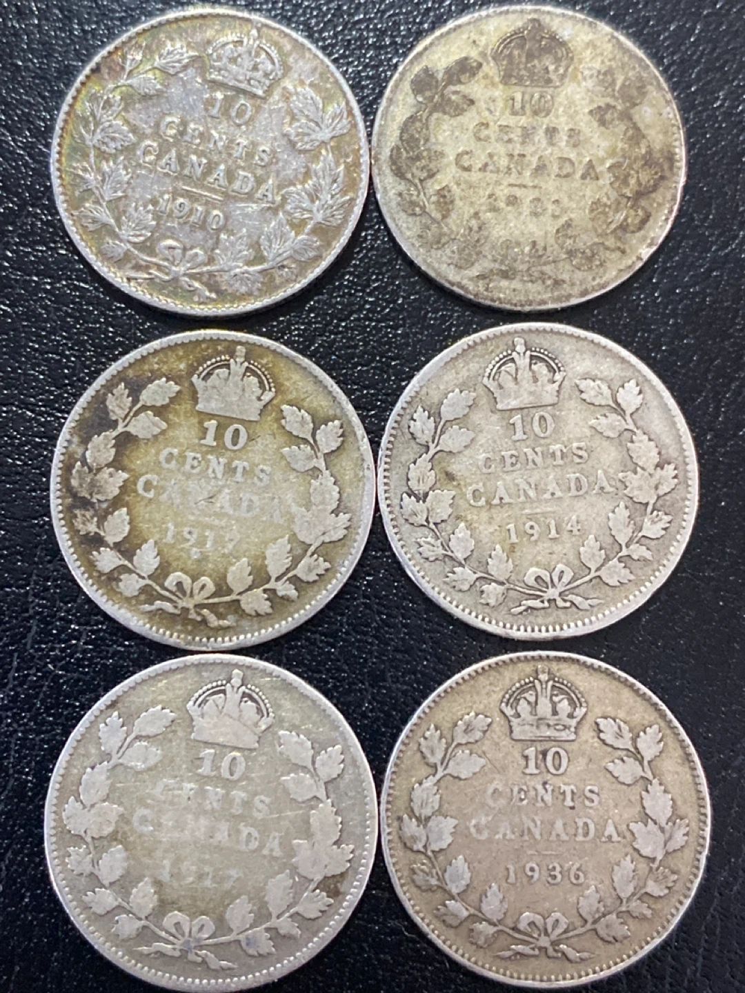 6 x Canadian 10 Cents Coins (1910-1936)
