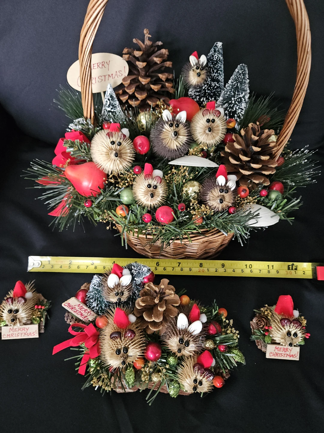 Christmas Decorations in excellent used condition. Measurements are shown in additional pictures. Price includes the 4 individual pieces shown in the 1st picture.