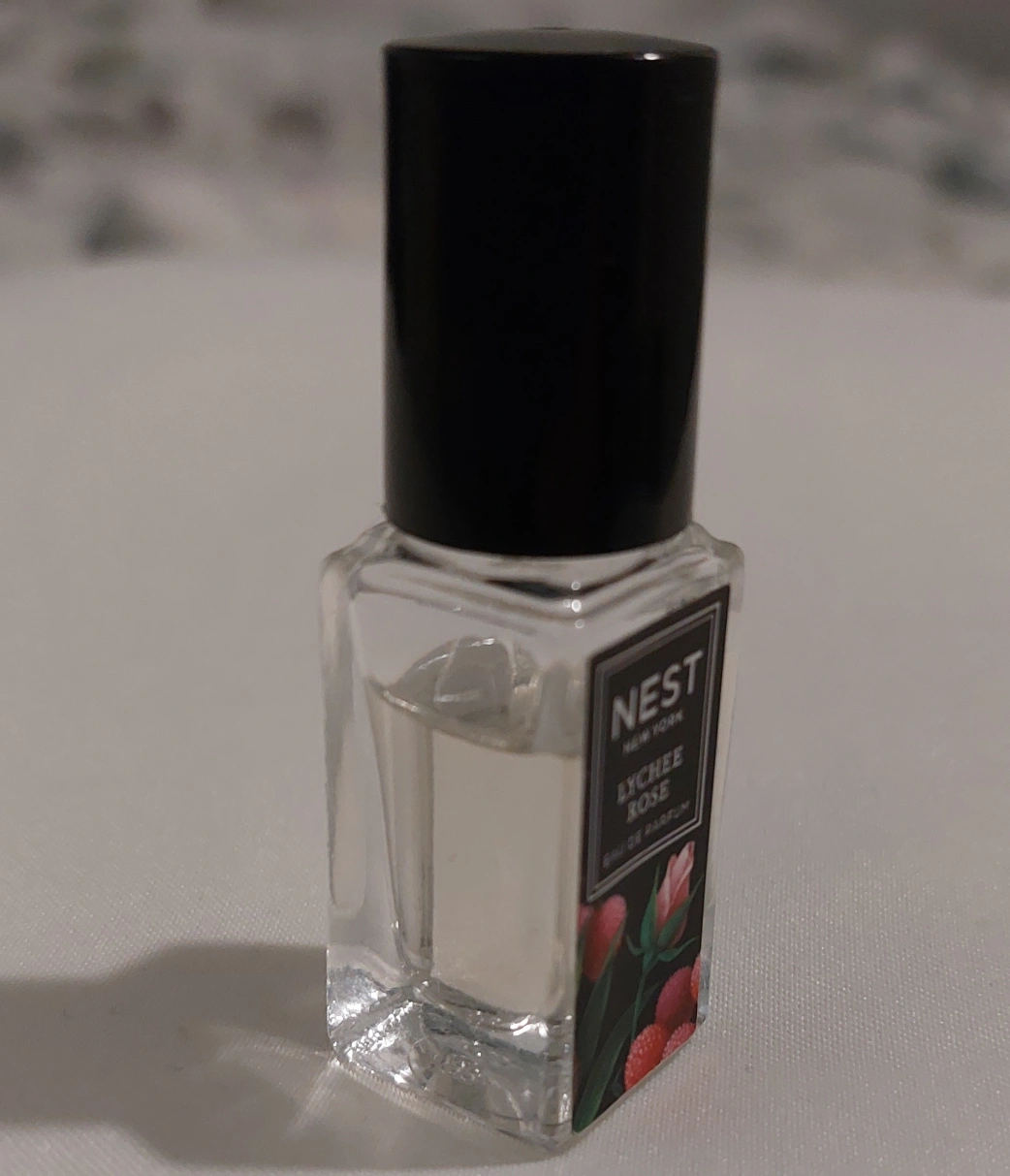 Selling a NEST New York Lychee Rose Eau de Parfum. It's a lovely fragrance with a blend of lychee and rose notes. The bottle contains 3 ml of perfume.