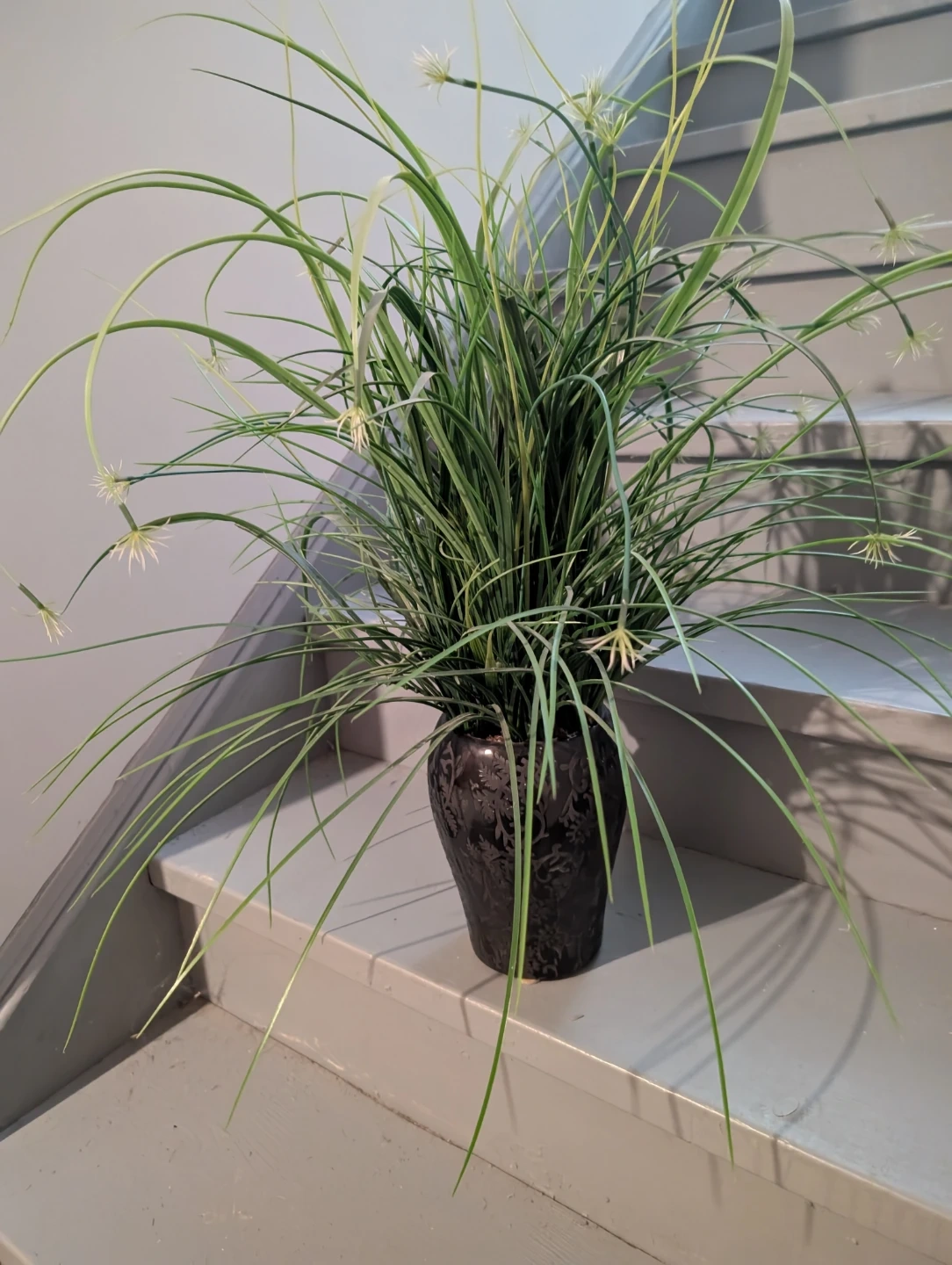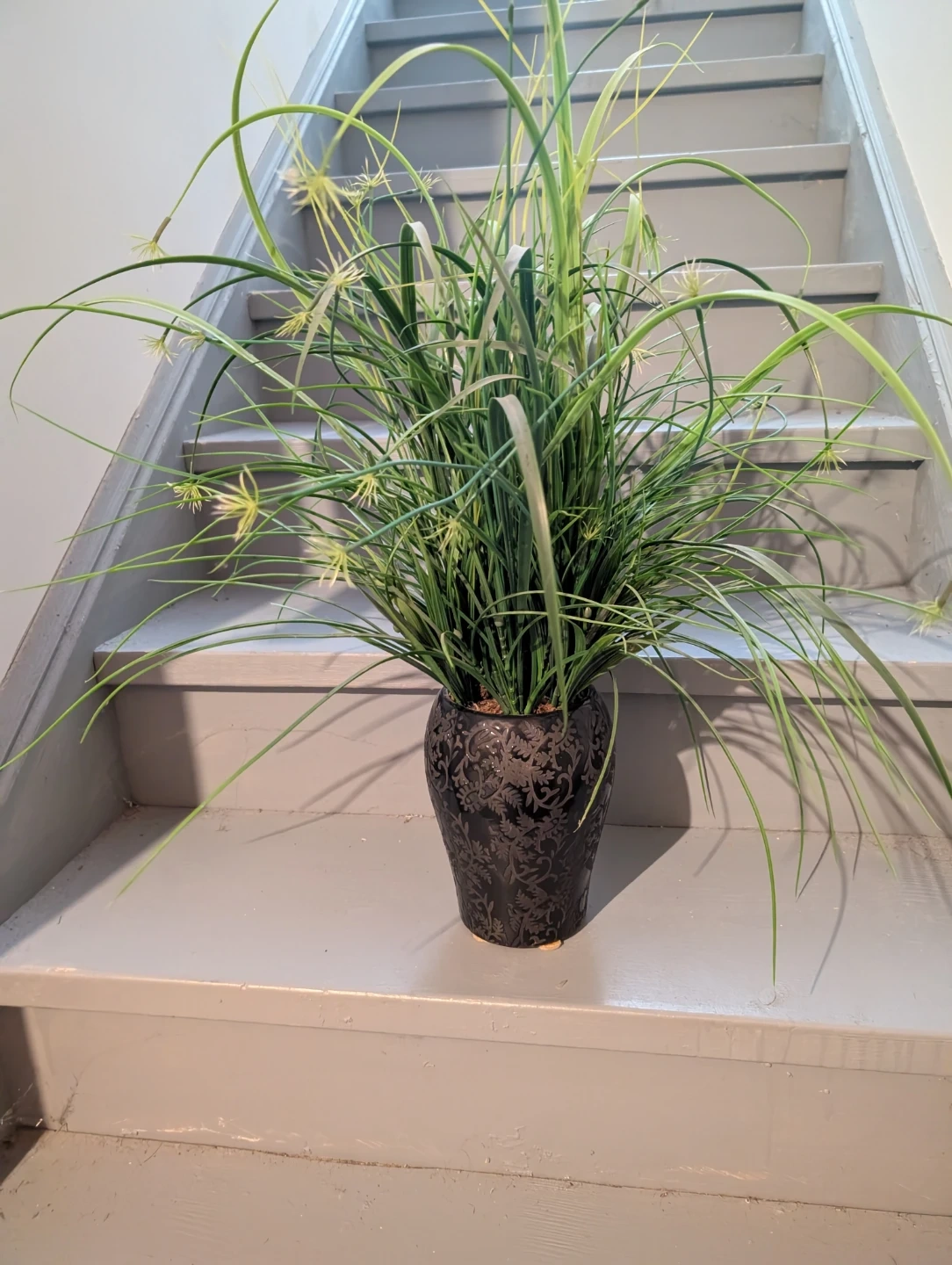 Beautiful artificial plant in decorative black vase. This plant brings greenery to any space without requiring any maintenance. It's perfect for adding a touch of nature to your home or office.