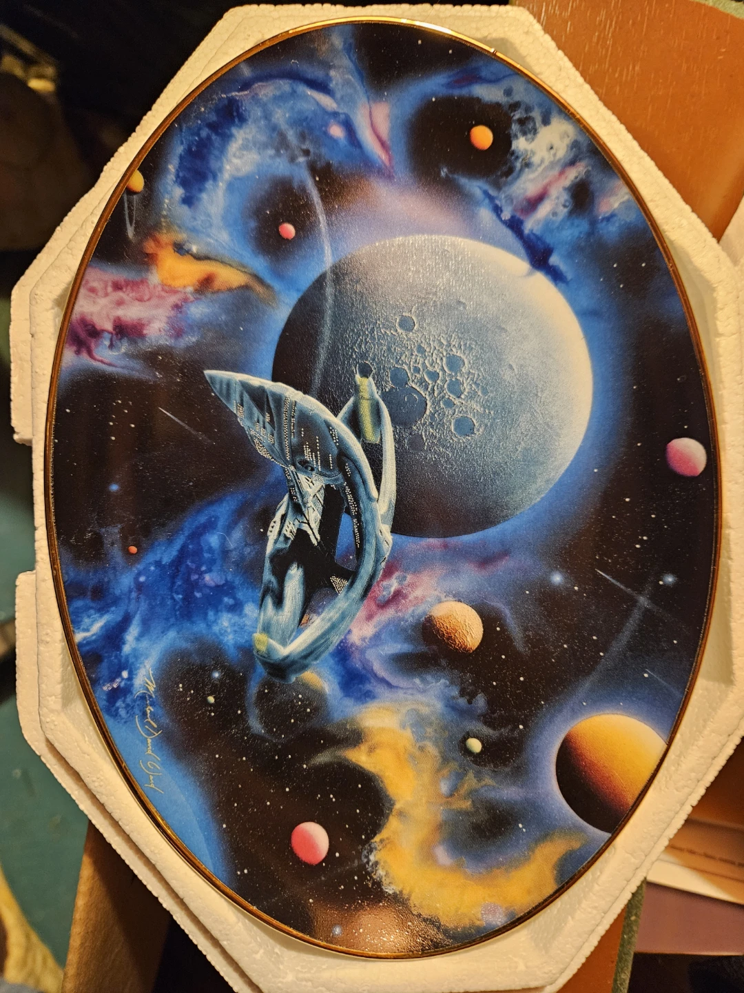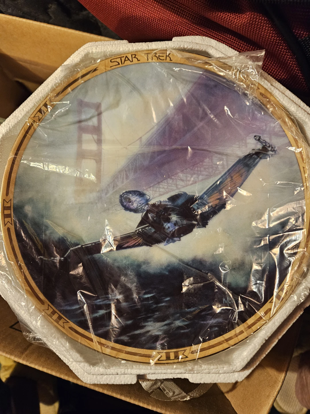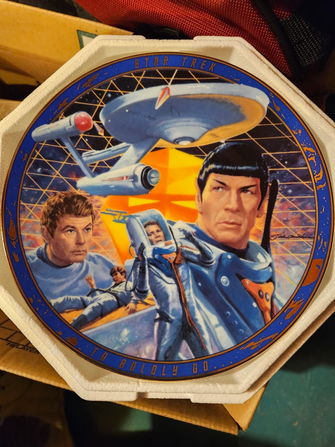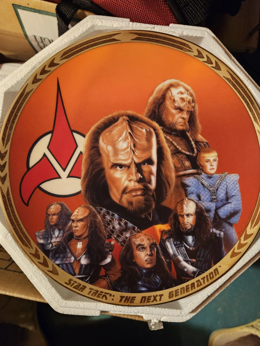 This is a Star Trek: The Next Generation collectible plate. It features artwork from the show and is in its original packaging. A great piece for any Trekkie's collection!
