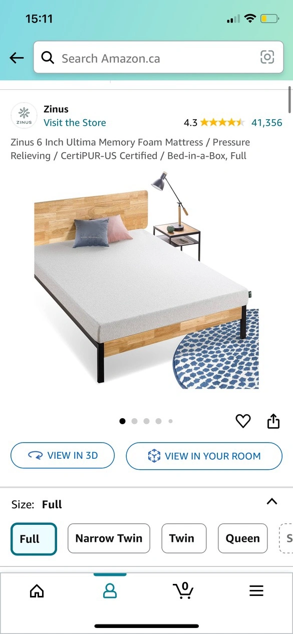 This is a full size mattress along with a metal bed frame. The frame and mattress are both in great condition. It was only used for one year. Comes with a removable mattress lining so it can be washed as well. Moving so I must sell.