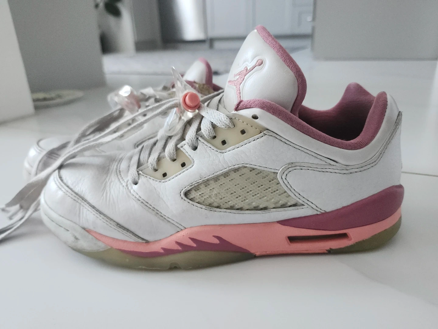 Buy & SellAir Jordan 5 Retro GS "White Pink"Air Jordan 5 Retro GS "White Pink"$50Kids' Air Jordan 5 Retro GS sneakers in white with pink accents. US Youth size 6Y, EU 38.5. Made in Vietnam.ConditionOkaySize6BrandJordanWHERE TO MEETLawrence and McCowanView MapSELLERverifiedMayaCentennial792 reviews0 chats·0 favorites·12 viewsSEND CHAT TO SELLERHi Maya! I’m interested in your listing.Hi Maya! I’m interested in your listing.Get the Karrot app to chatSign In to chat