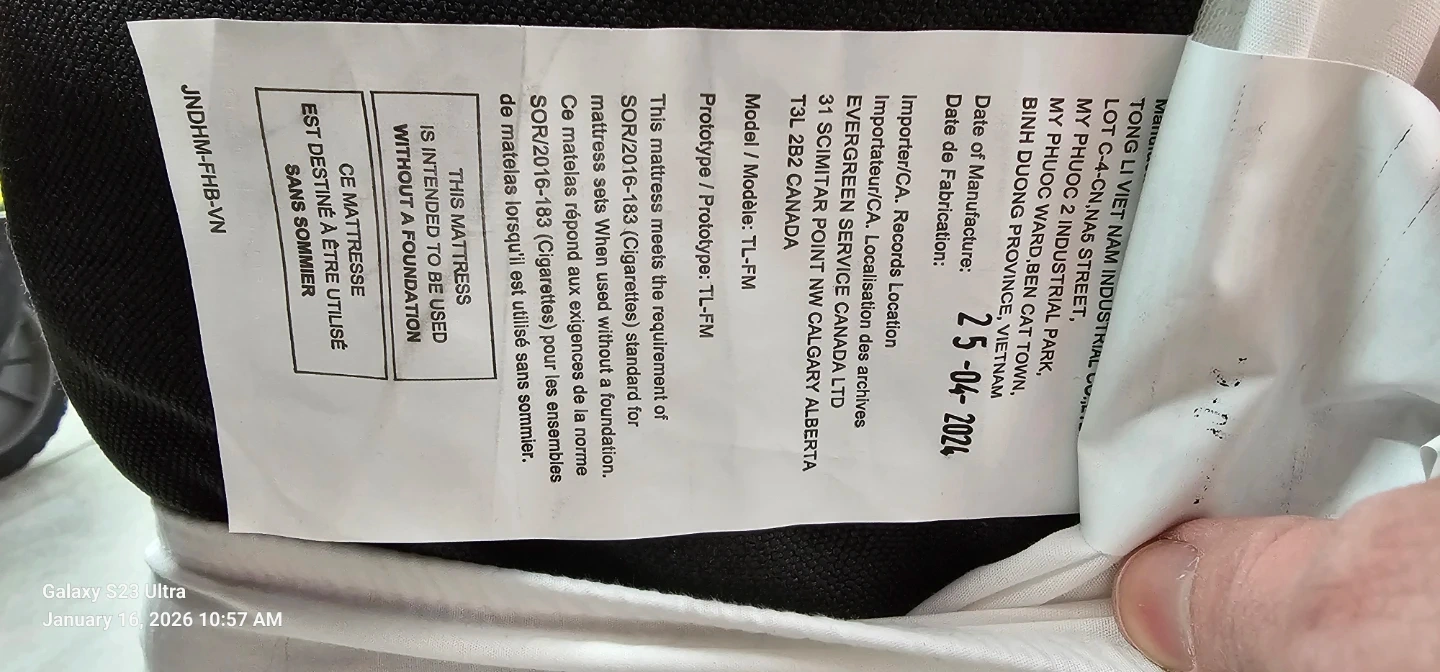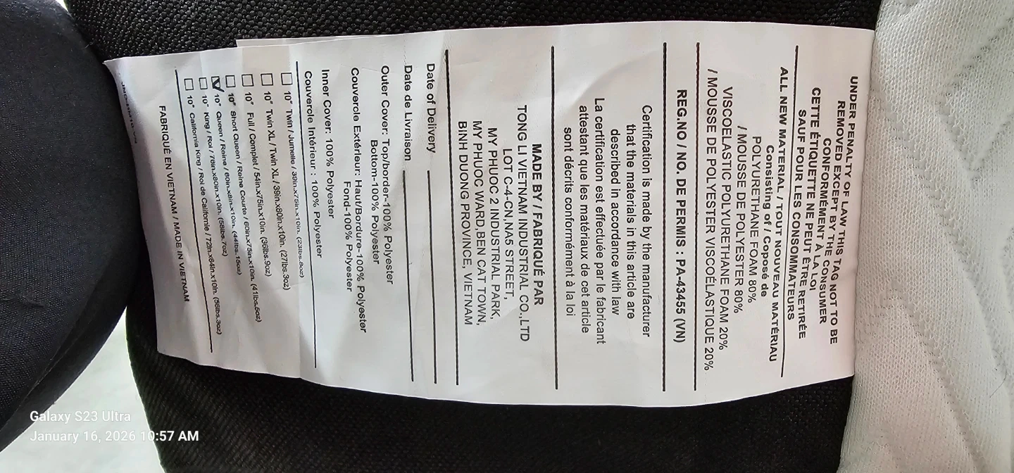 Queen size memory foam mattress, manufactured 2024.