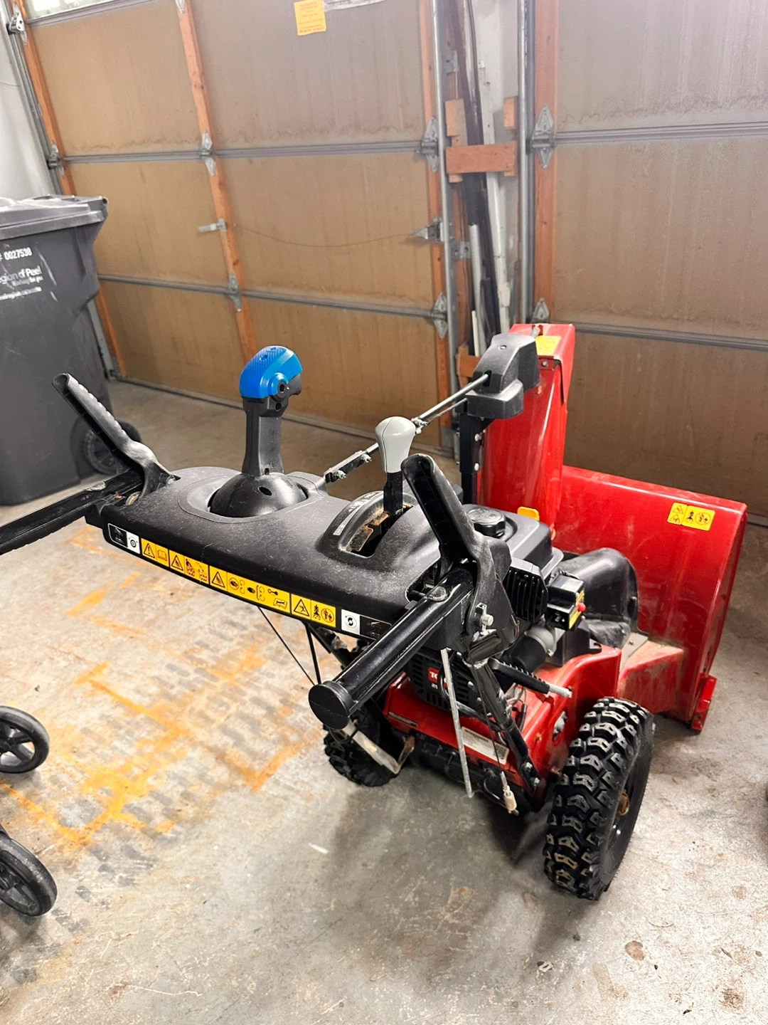 Red Toro snowblower for sale. It's a reliable machine for clearing snow. Features include a powerful engine and durable augers. Three seasons old - runs like new.