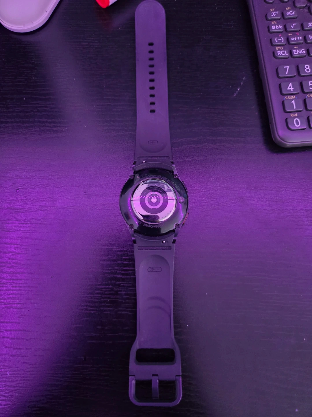 Samsung Galaxy Watch 5 with a black strap. It's a smart wearable device. Charging puck included. Always on display