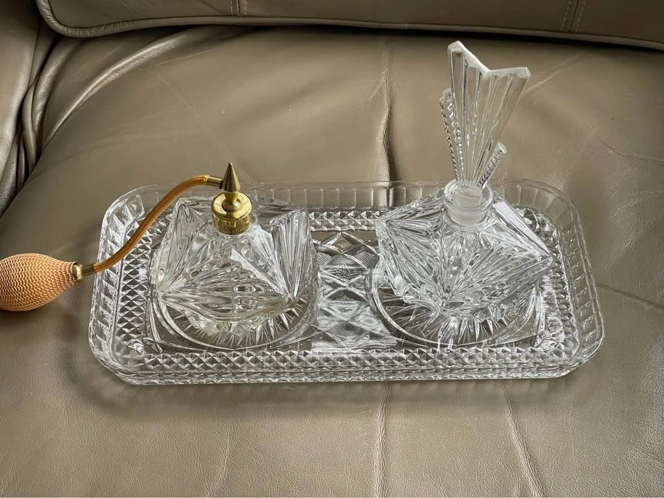 Vintage pretty glass perfume bottles and tray