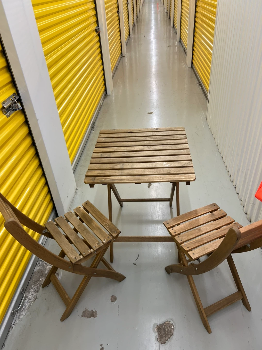 Selling a cute wooden folding table with two matching chairs. Perfect for a small balcony or patio! The set is in great condition and ready for a new home. Easy to fold and store when not in use, making it ideal for small spaces