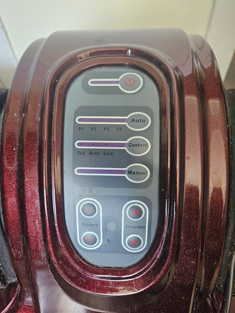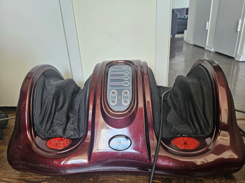Electric foot massager. Multiple massage settings. Barely used but it's a few years old. Works perfectly. The fabric part can be taken out and washed I think. I used it a couple of times with socks on.