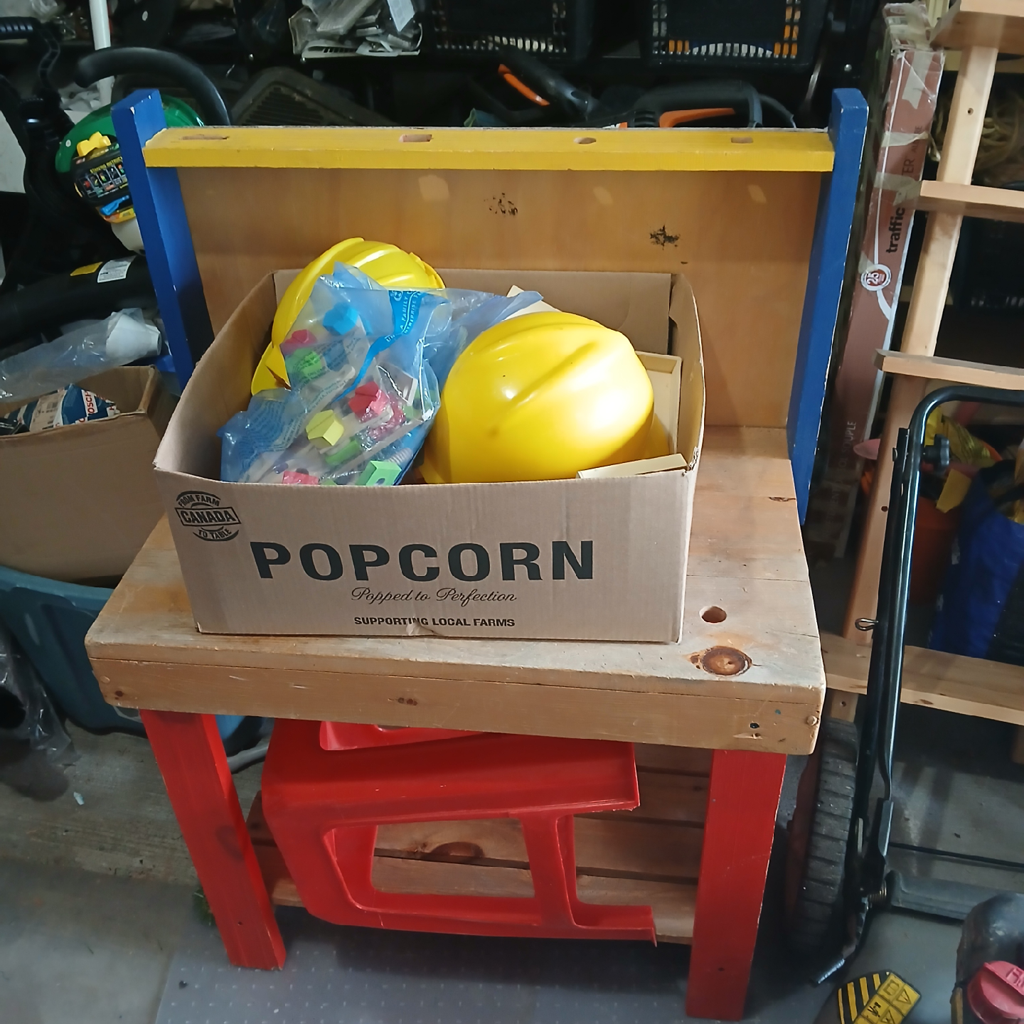Selling a fun construction toy set for kids! Very good condition. It comes with two bright yellow helmets and a variety of wooden blocks, tools, and clamps for building and creating. Perfect for imaginative play and developing fine motor skills. $25. Great for home, cottage, daycare.
