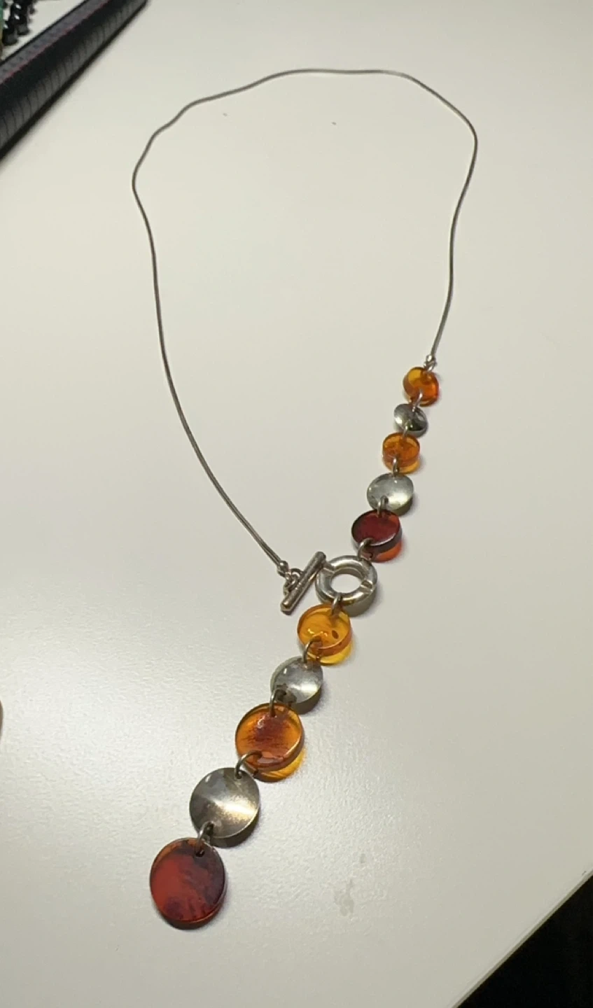 Beautiful one-of-a-kind amber and sterling silver necklace.
