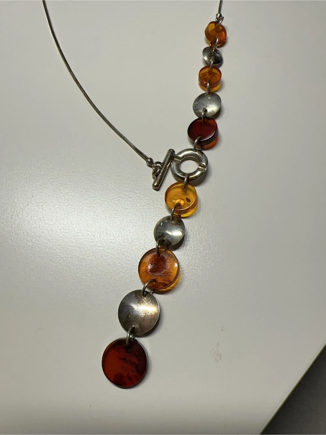 Beautiful one-of-a-kind amber and sterling silver necklace.