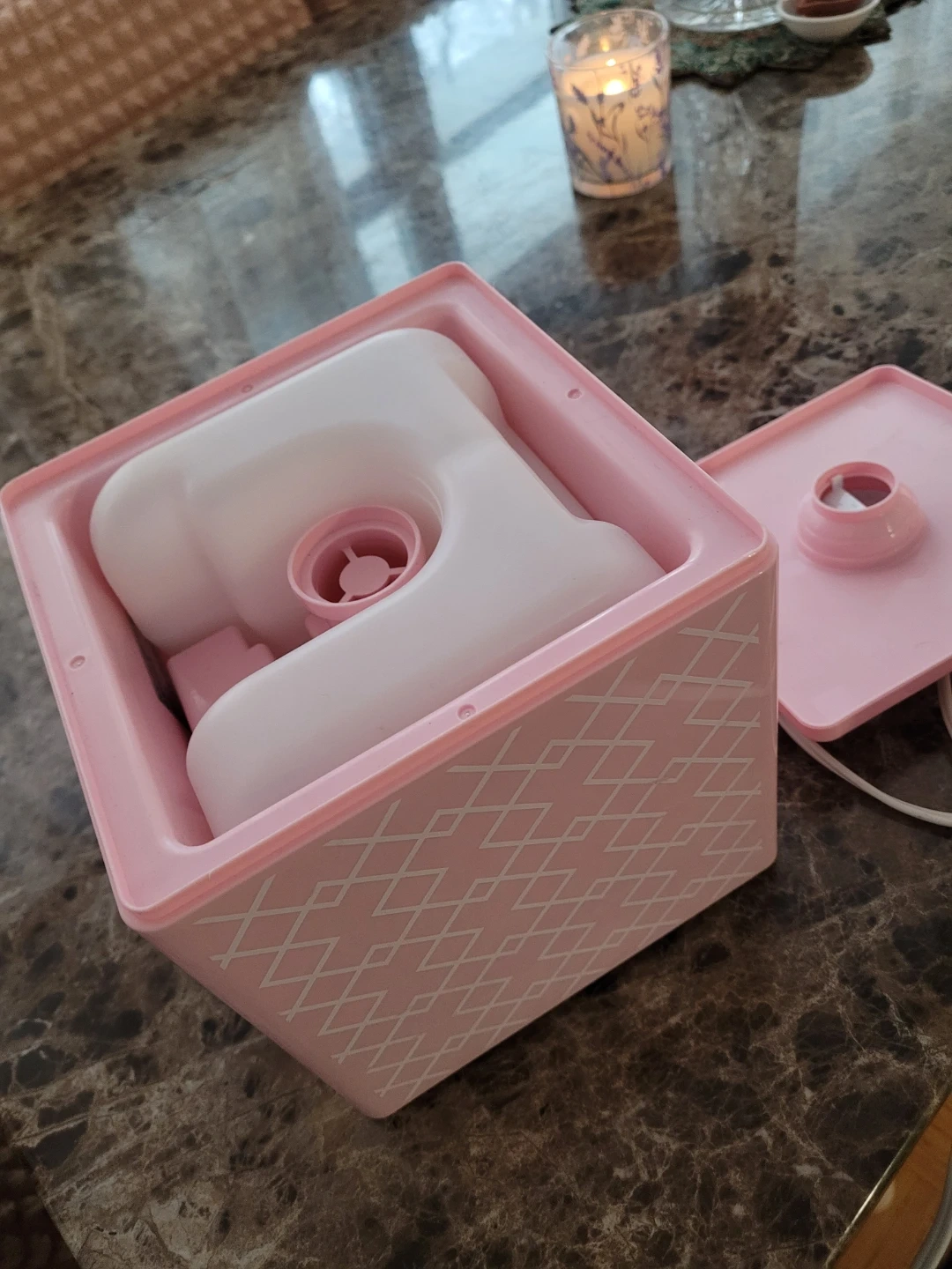 This pink humiditifier with a detachable water tank and power cord. . It's suitable for anyone looking to refresh their at home. Moving sale.