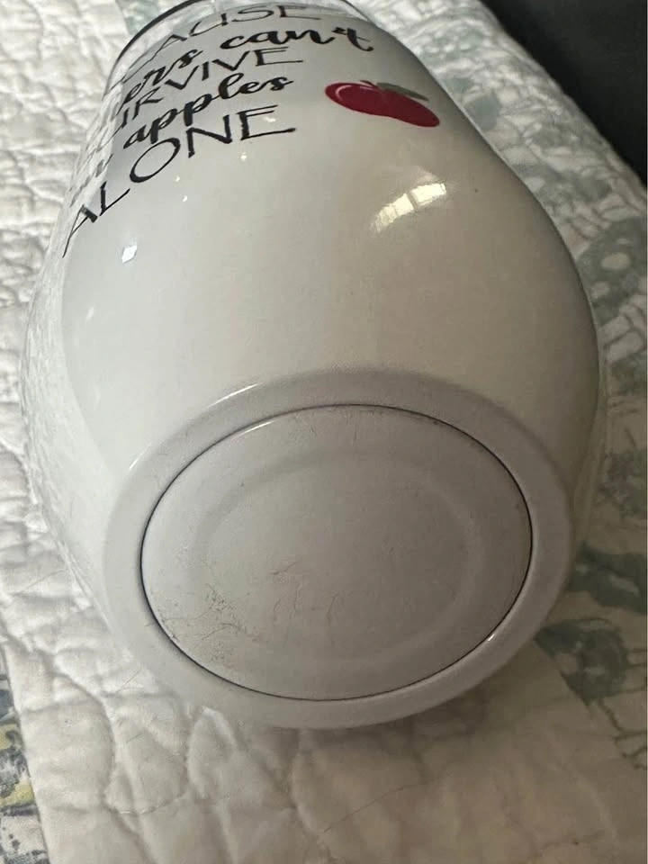 Show that special teacher in your life your appreciation with this "because teachers can’t survive on apples alone" wine tumbler. Clear top. Brand new and a great teacher gift. Pick up Welland. Please take a look at my other items posted. Thank you.