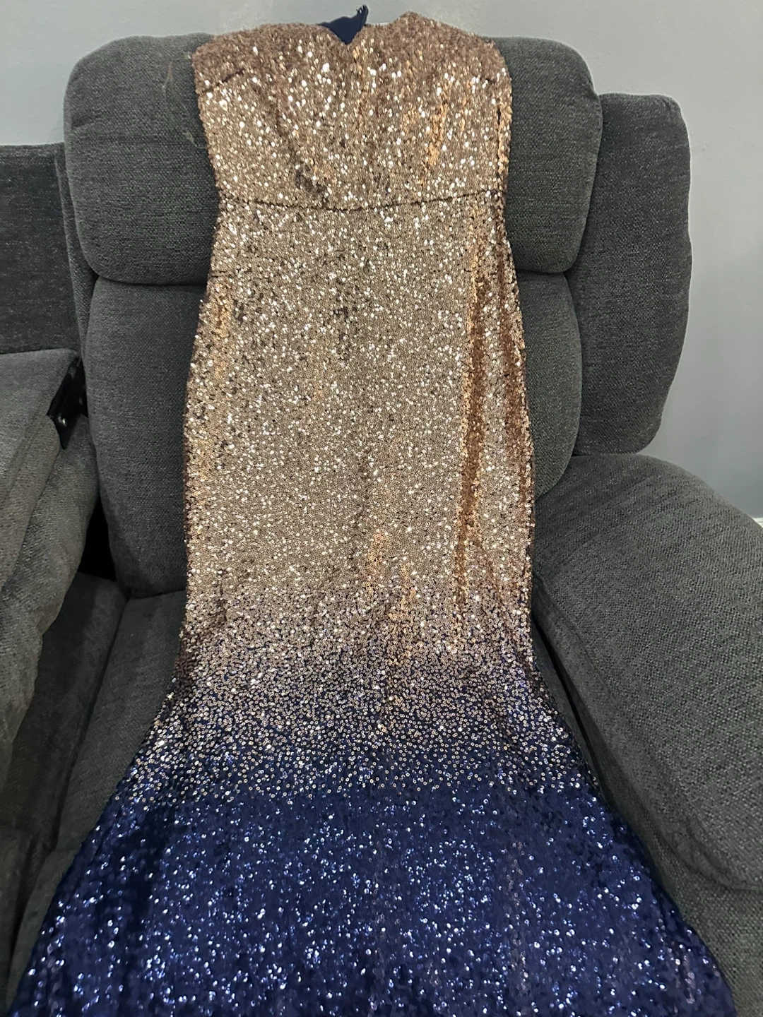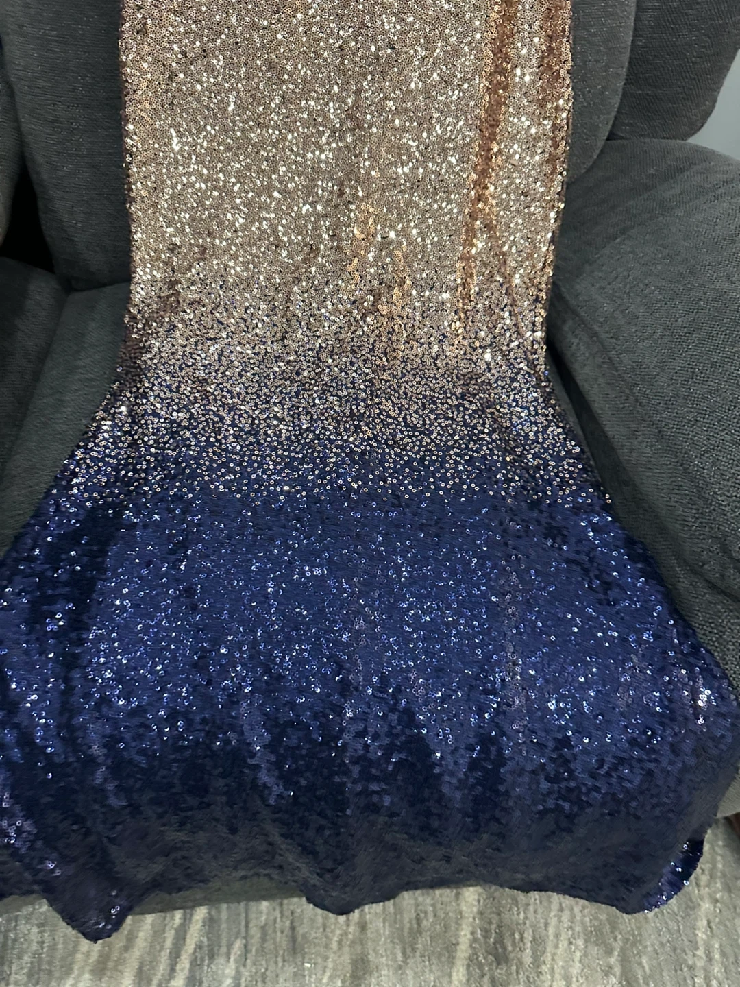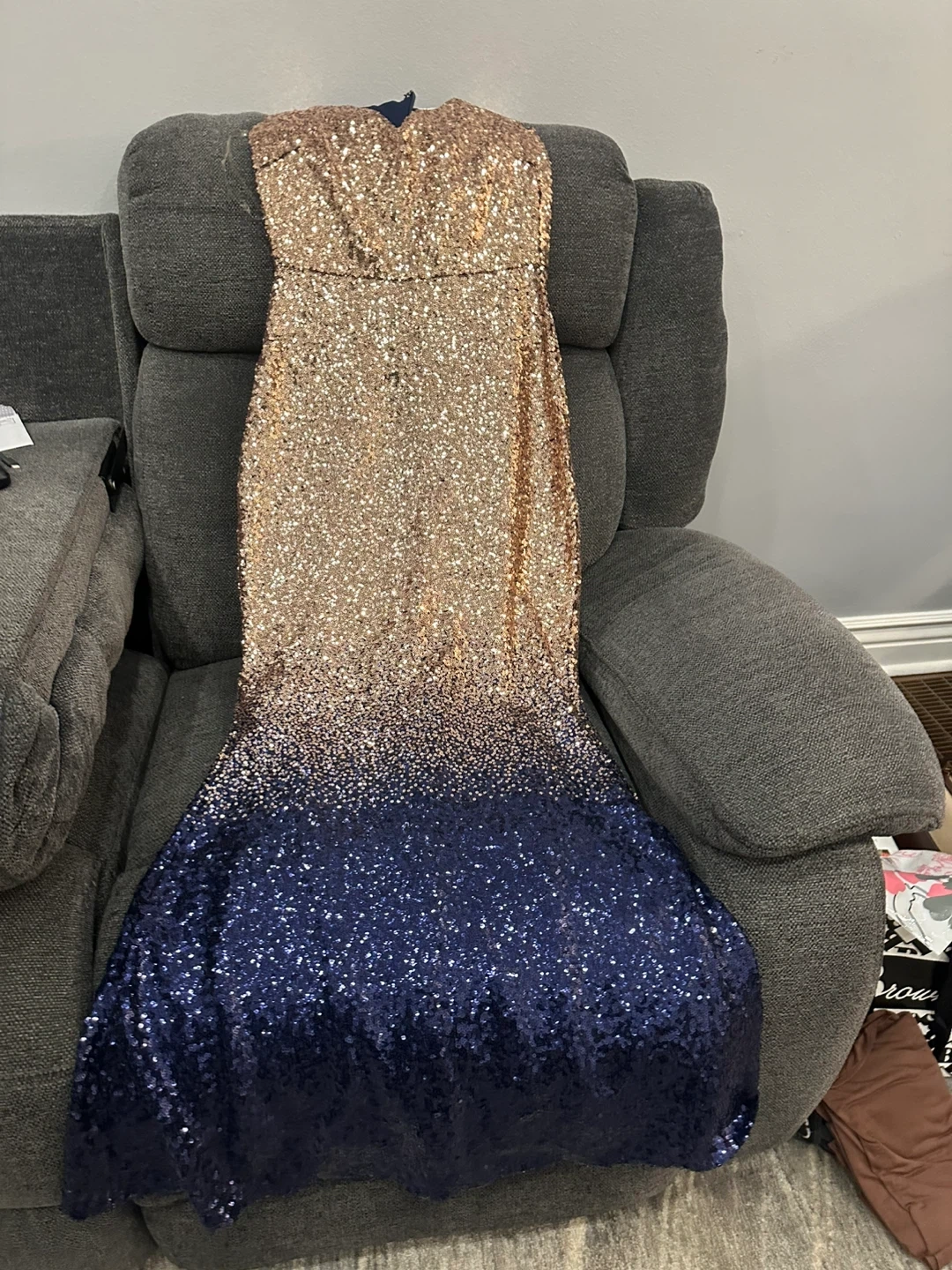 This beautiful sequin dress is made by City Goddess London. It features a stunning gradient from rose gold to navy blue. Designer dress. High quality. The size is UK 6. Xsmall worn only once. 55 cash pickup at Keele and eglinton