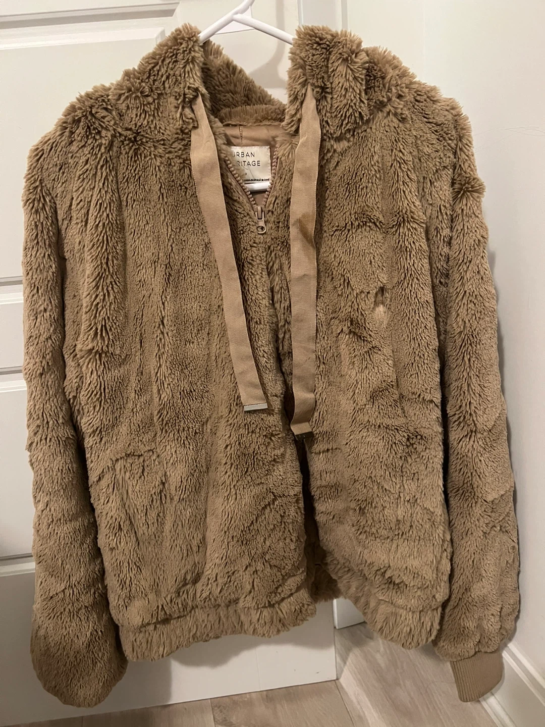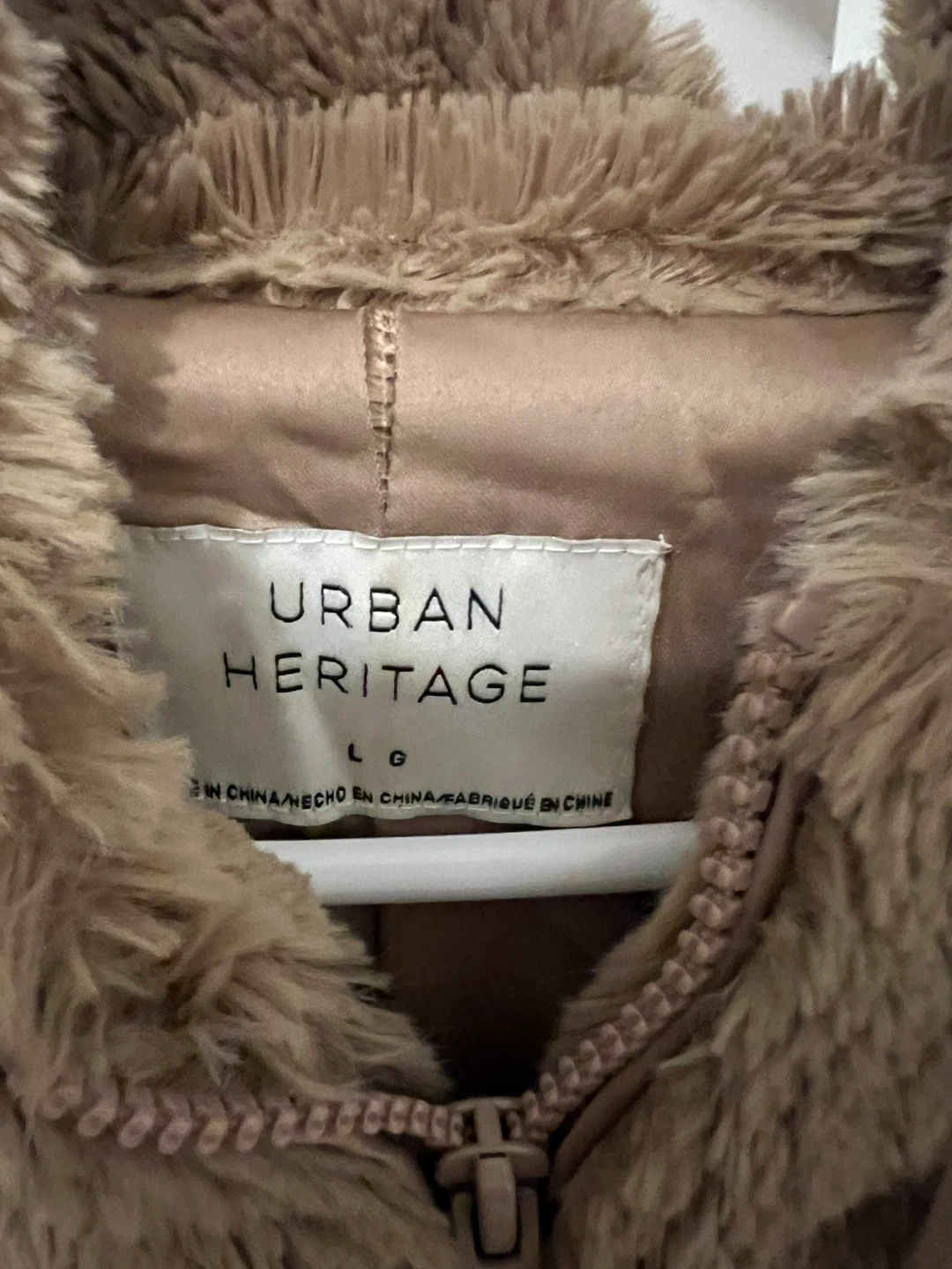 Cozy up in this Urban Heritage faux fur hoodie! It's a size large and features a soft, plush texture. Perfect for adding a touch of warmth and style to your wardrobe. The neutral colour makes it easy to pair with any outfit
