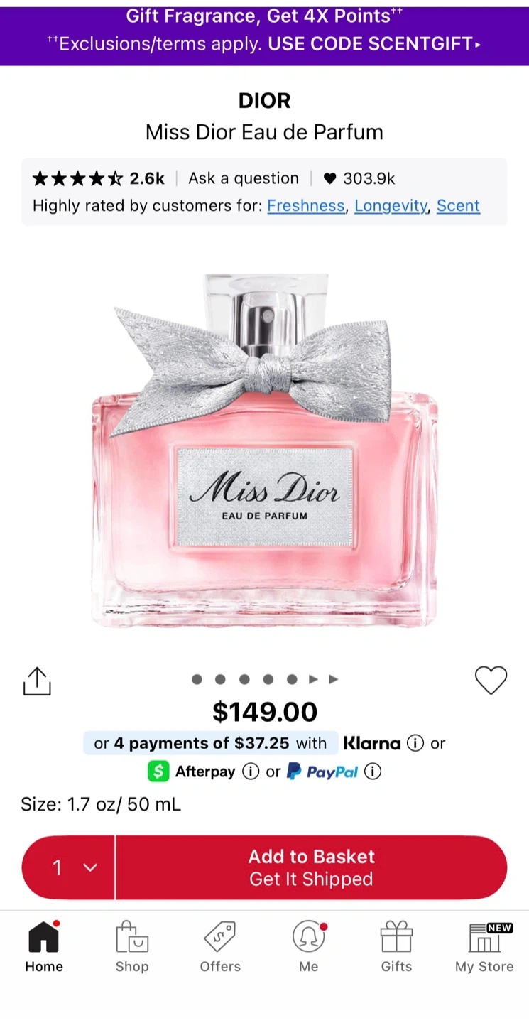 Selling a bottle of Miss Dior Eau de Parfum. It's a 50ml bottle and comes with the box. Retails for $149. Only used it like 6-7 times, still very full!!!