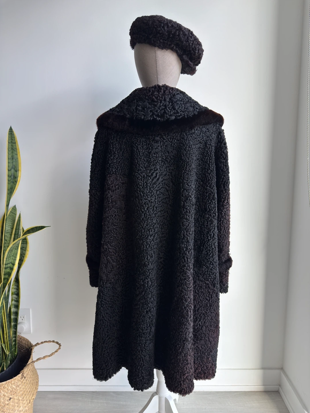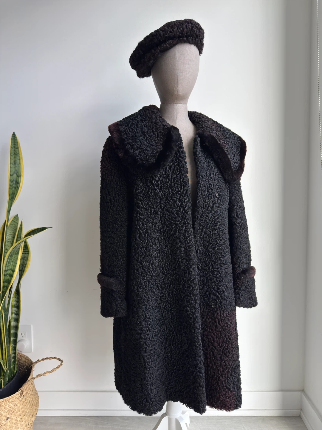 Vintage Black Persian Lamb Coat with Matching Hat