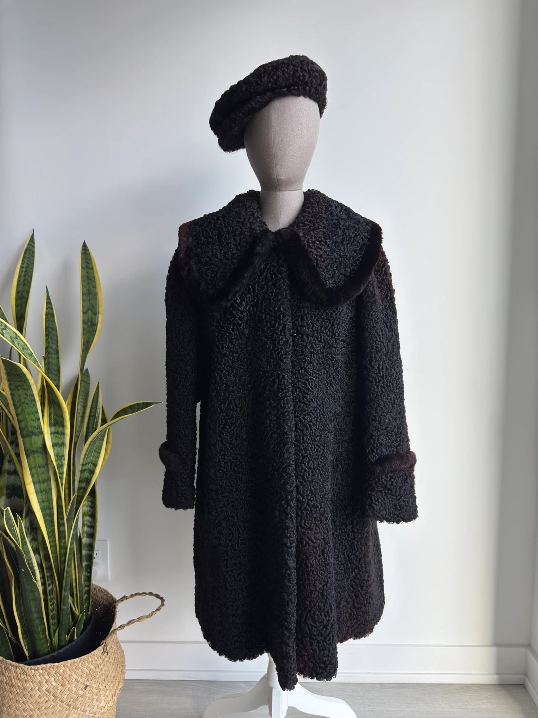 Vintage Black Persian Lamb Coat with Matching Hat