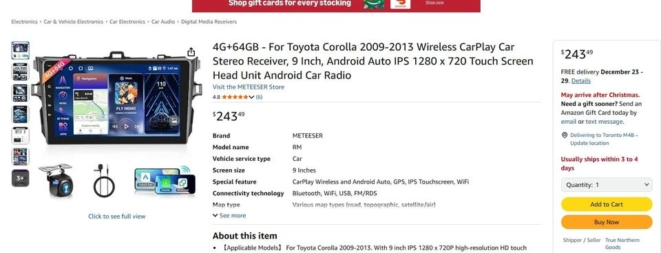 CarPlay Car Stereo Receiver for Toyota Corolla