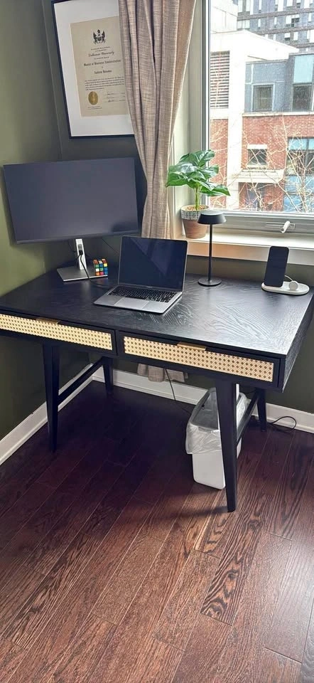 Purchased for $300, but the color doesn't go with the rest of my space. It's beautiful and barely used since I'm now in the office 4 days a week. I'm looking to get a smaller desk in a slightly different color. Dimensions are 48” wide, 24” deep, and 30” high. If you get the desk at $150, I’ll include a free Ikea Odger desk chair that swivels. Pick up is at Parliament and Dundas (Regent Park).