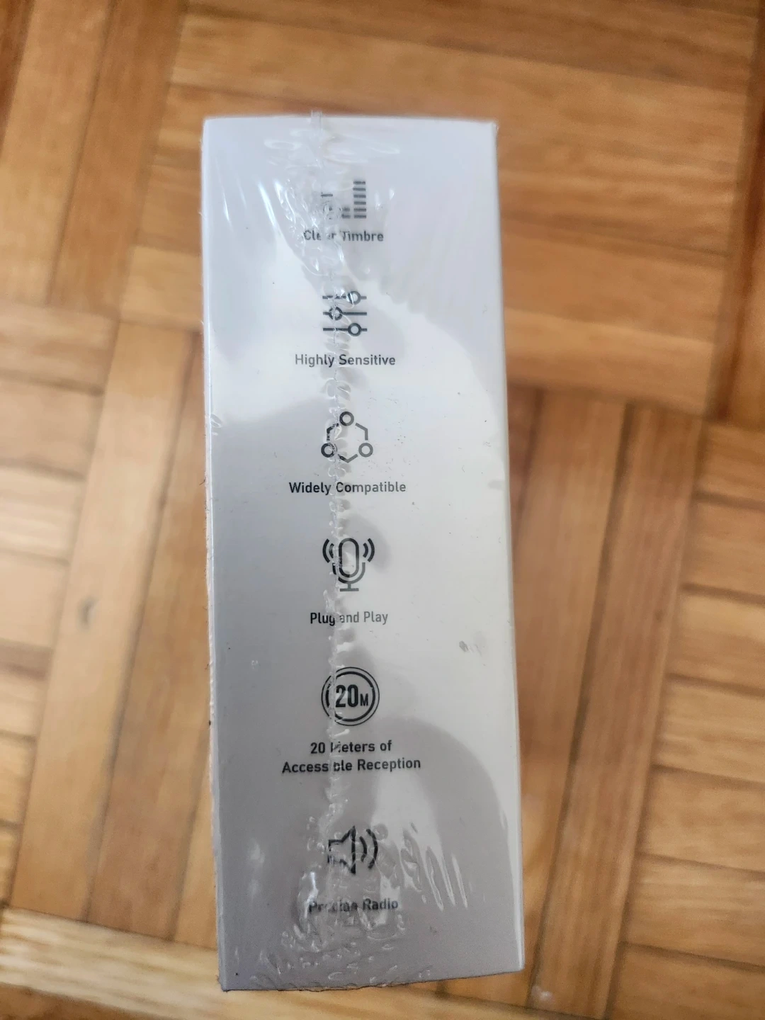 This wireless microphone set is designed for live shows, interviews, and short video creation. It's plug-and-play and offers 20 meters of reception. The microphones have clear timbre and are highly sensitive.