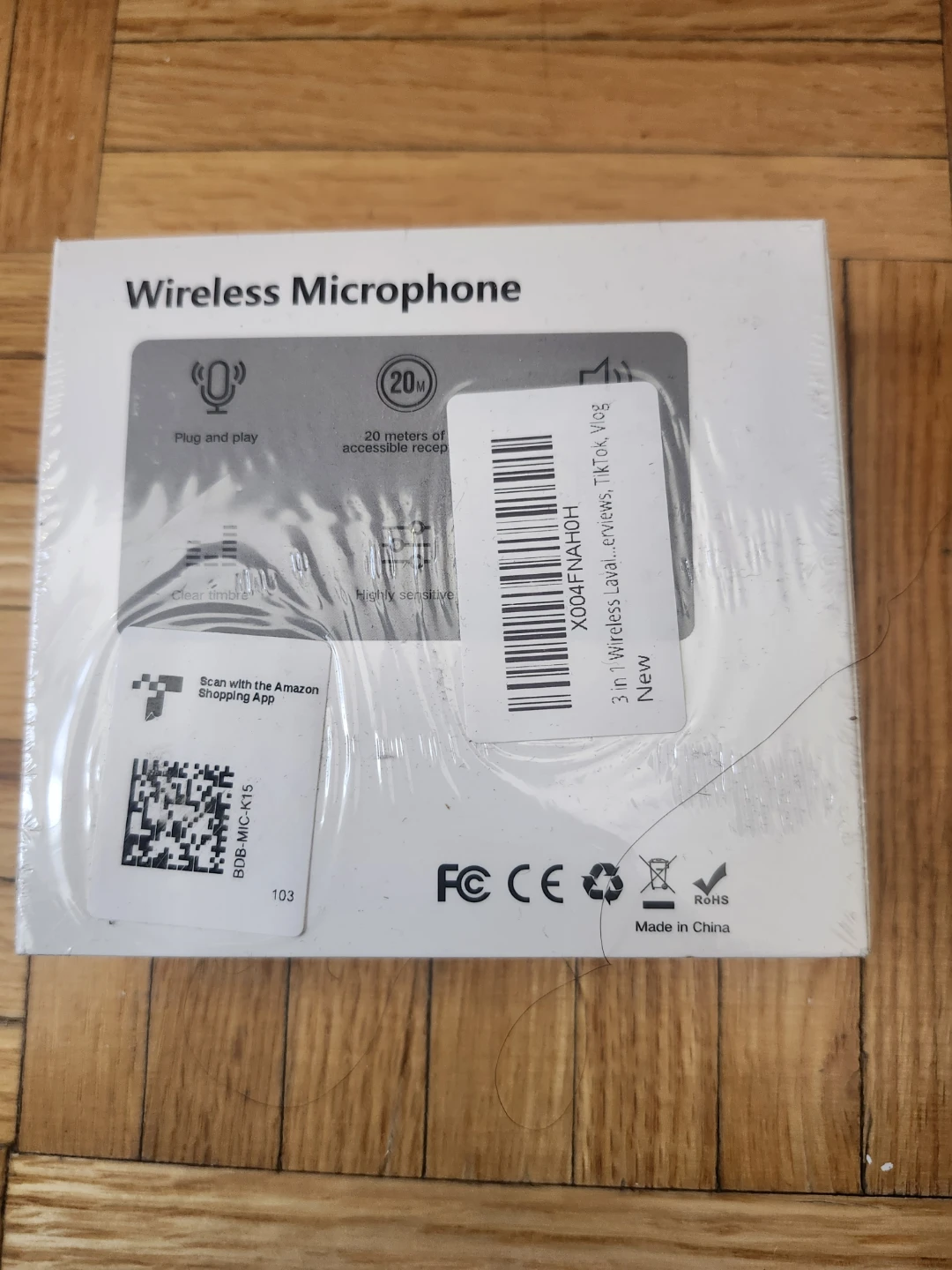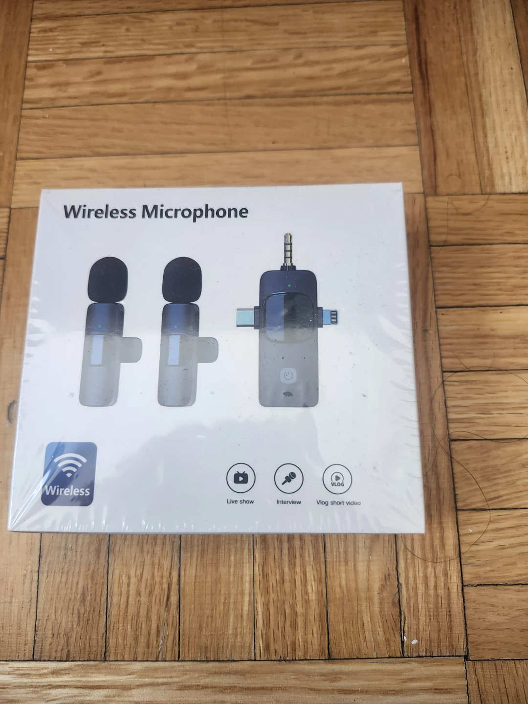 This wireless microphone set is designed for live shows, interviews, and short video creation. It's plug-and-play and offers 20 meters of reception. The microphones have clear timbre and are highly sensitive.