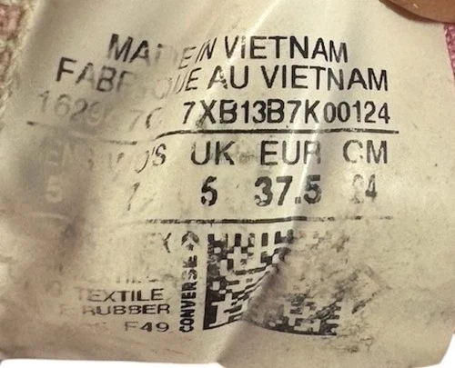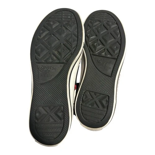 These are the limited-edition Converse x Hello Kitty Chuck Taylor All Star Canvas Ox sneakers, released in August 2018. They feature a black canvas upper with an all-over Hello Kitty face print and pink laces. Colorway: Black/Prism Pink/White. Features include the Hello Kitty pattern across the canvas upper, "Say hello to me when you see me!" messaging on the midsole, and lace dubraes shaped like Hello Kitty's bow. The inner lining has a pink and red polka-dot print. Preowned condition with some fading on the Hello Kitty print. Soles and interior are still in great condition with a lot of life left.