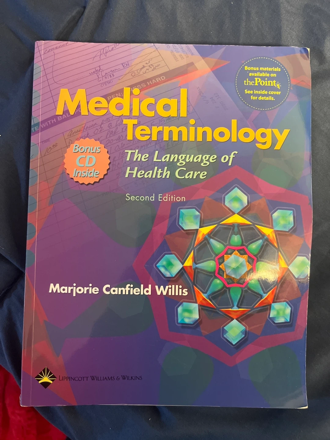 This set includes the 'Medical Terminology: The Language of Health Care' Second Edition textbook by Marjorie Canfield Willis and a blood pressure monitor with a stethoscope and cuff. The textbook comes with a bonus CD inside. It's a great resource for anyone studying health care.