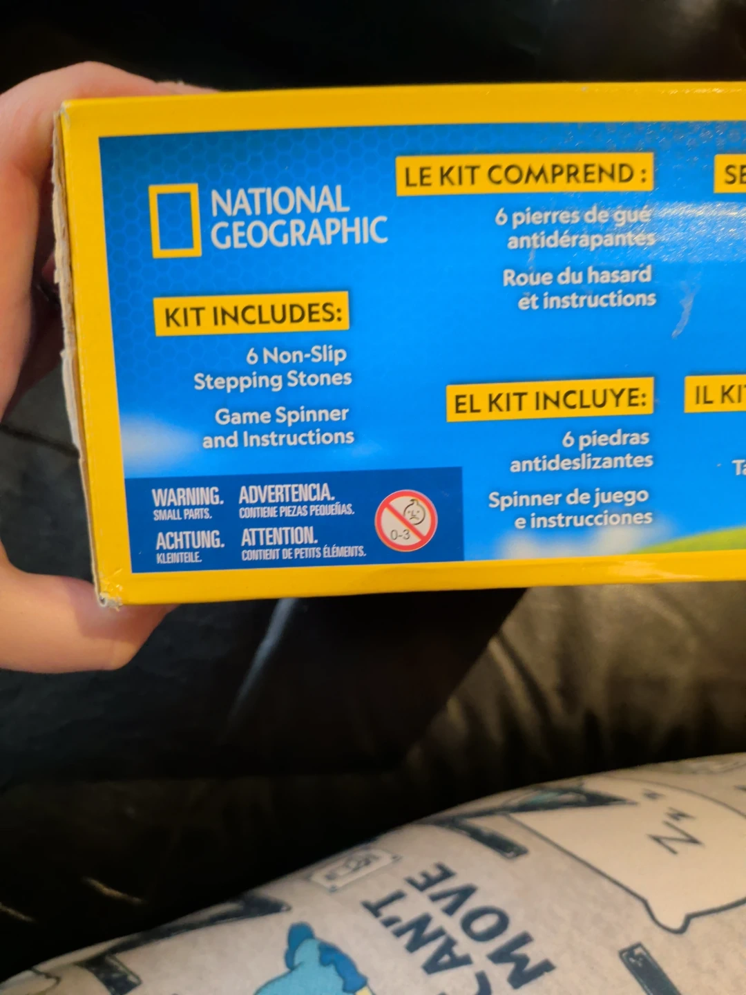 This kit includes 6 non-slip stepping stones and a game spinner with instructions. It's designed for balance and active play. Recommended for ages 3 and up.