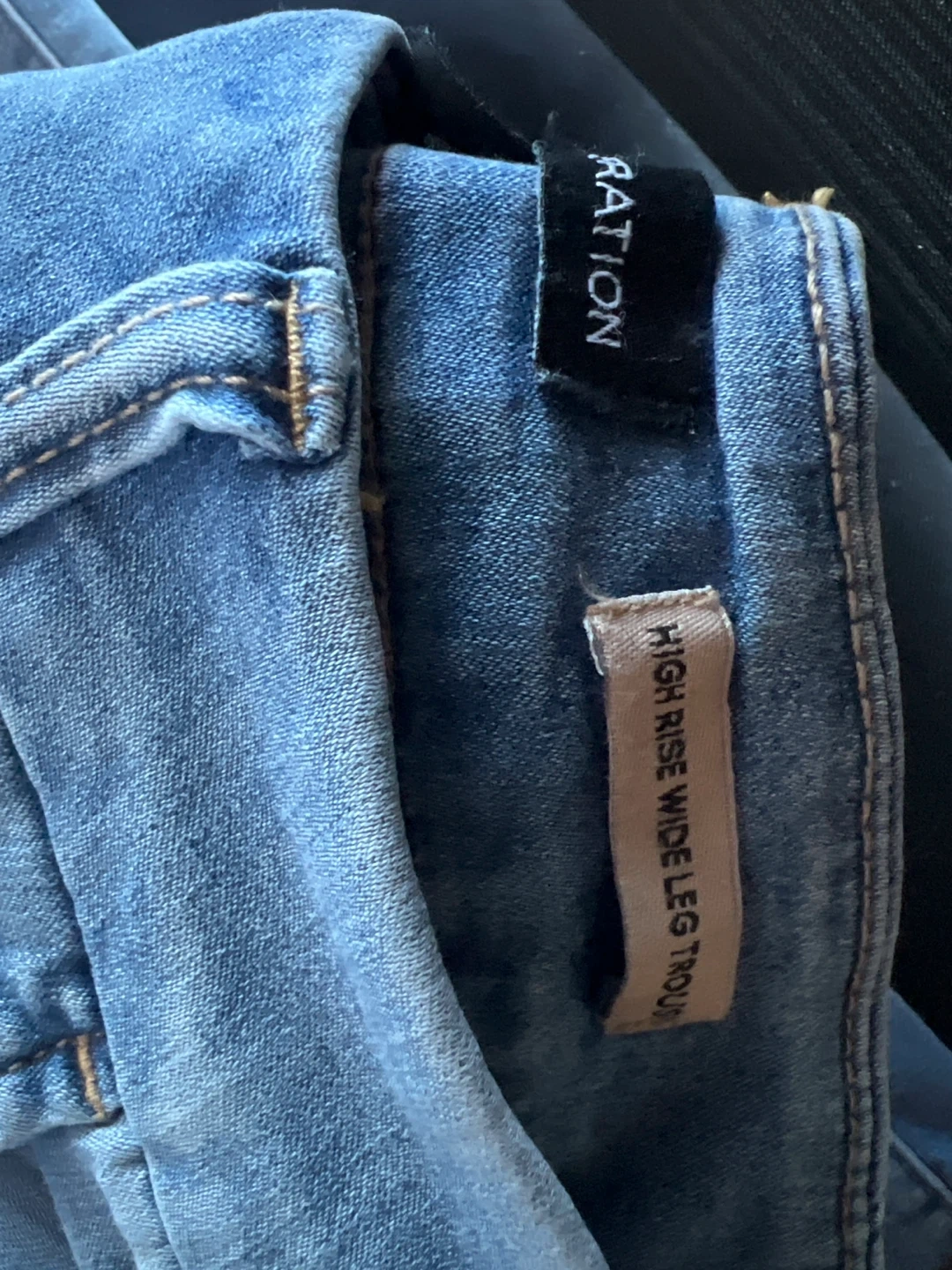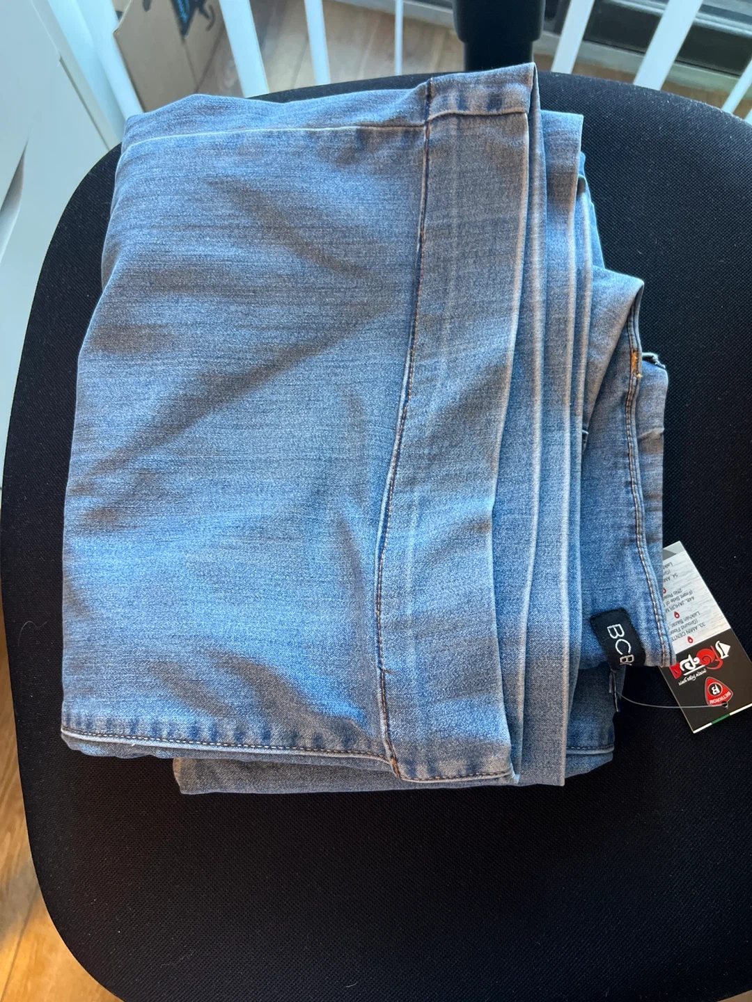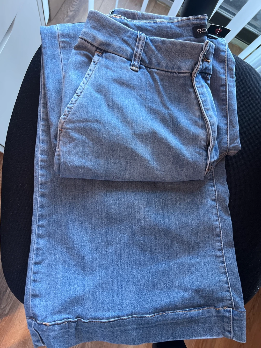 Selling a pair of BCBGeneration high-rise wide-leg trousers! They're in great condition and ready for a new wardrobe. These jeans are a light wash denim, perfect for a casual or dressed-up look
