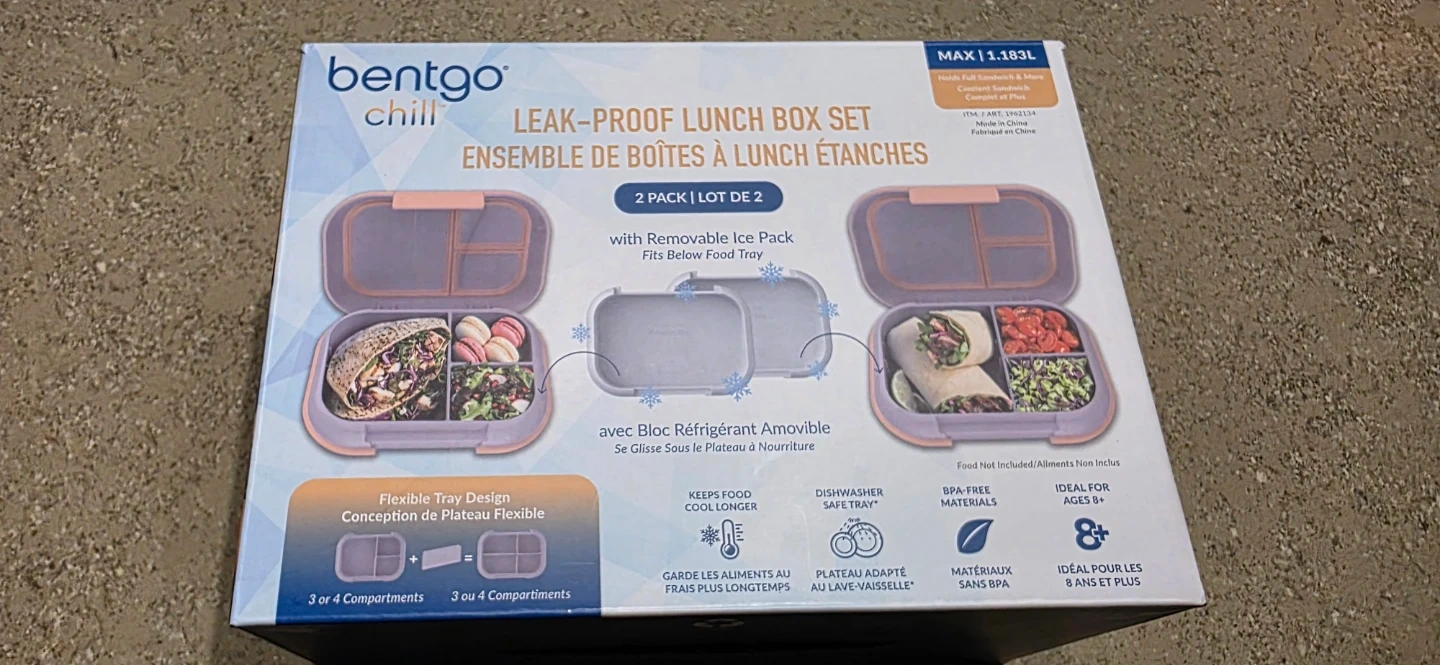 Brand new in box, usually a single unit sells for over $30. This Bentgo Chill lunch box set comes with a removable ice pack to keep food cool longer. It features customizable compartments and a leak-proof design that prevents messy spills. The BPA-free materials and dishwasher-safe tray make it a convenient choice.