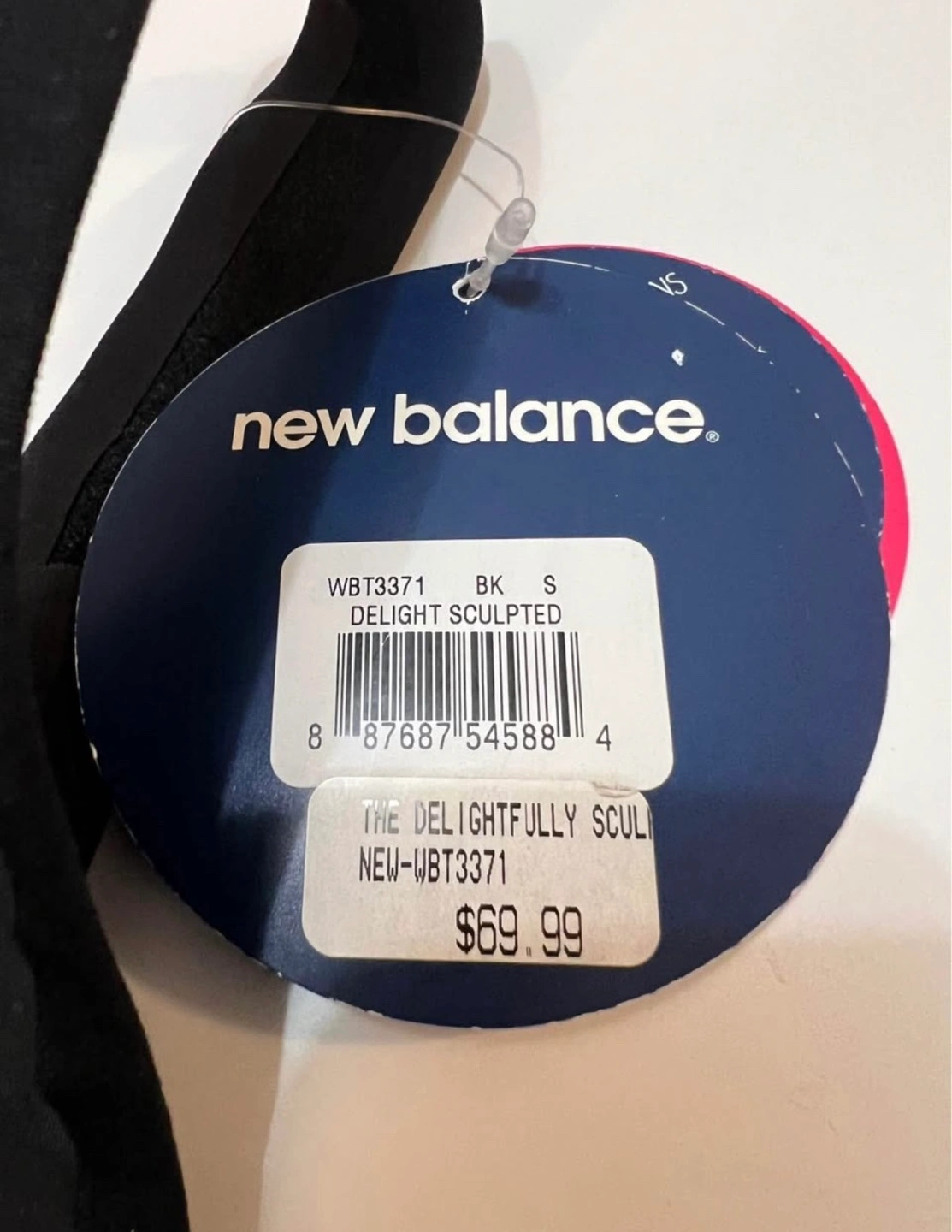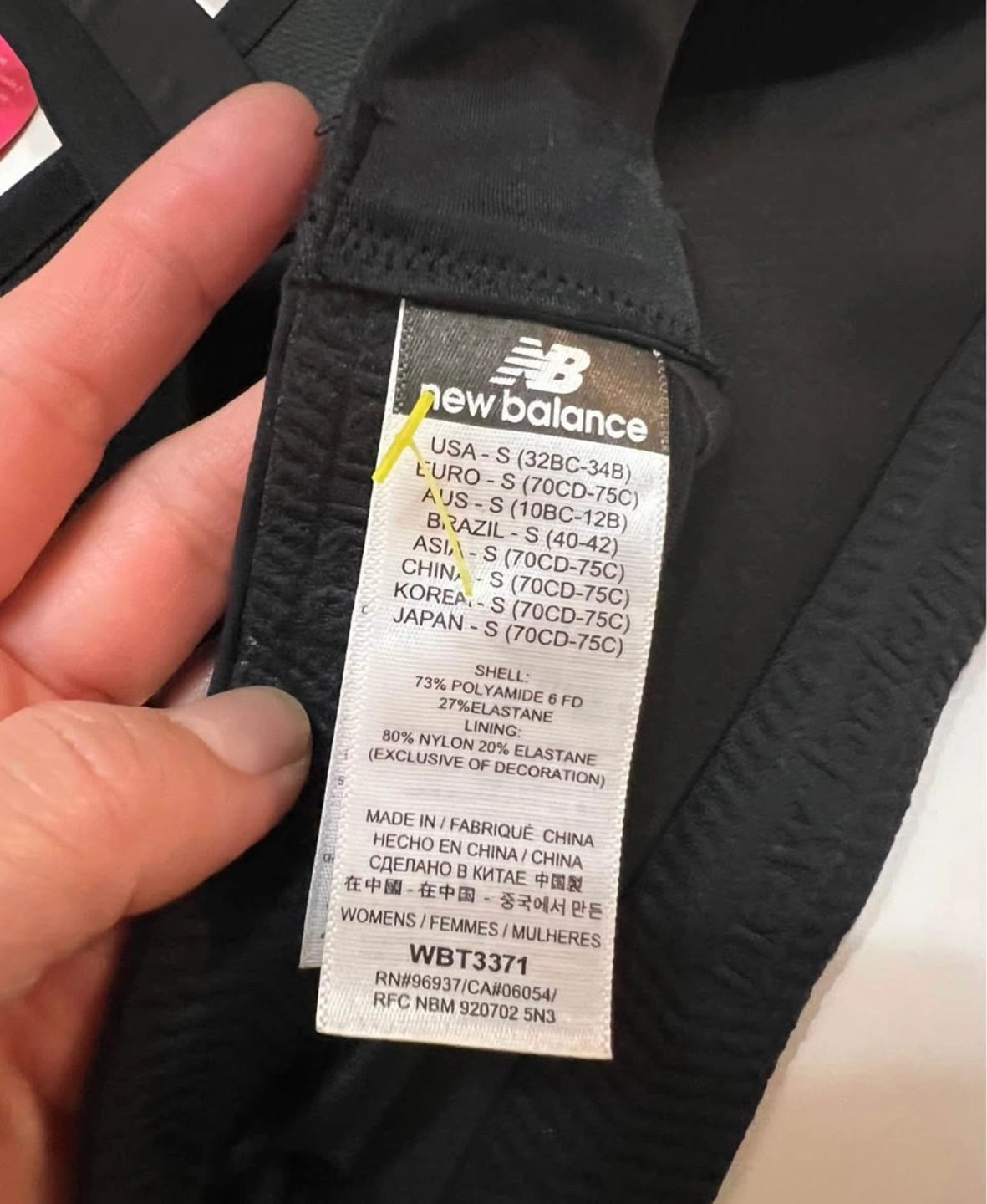 New Balance women's sports bra. Size small. Black. High impact support. 4-way motion control. Features include stabilized front and underbust frame, hidden underwire, and adjustable straps. Moulded cups. Hook and loop back closure.