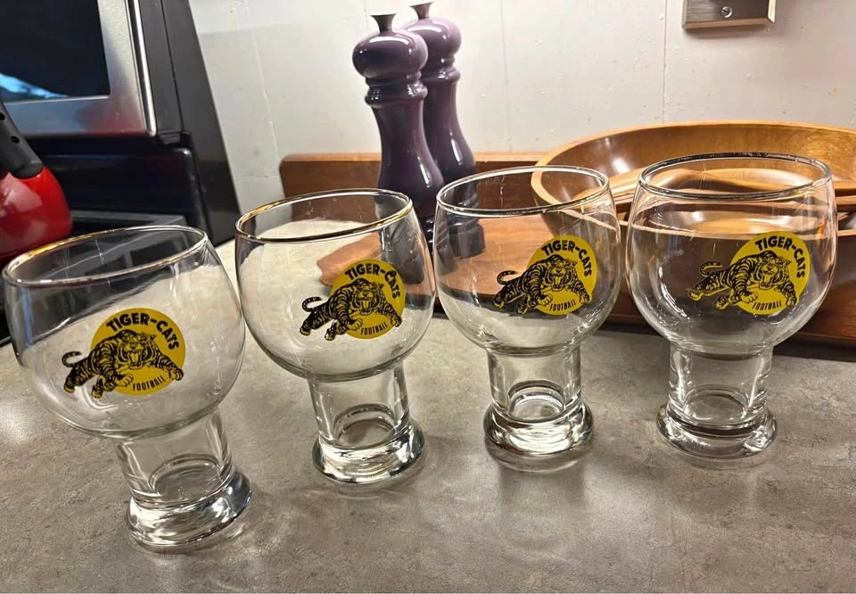 Vintage Beer Glasses (4) - 1970s Hamilton Tiger-Cats CFL