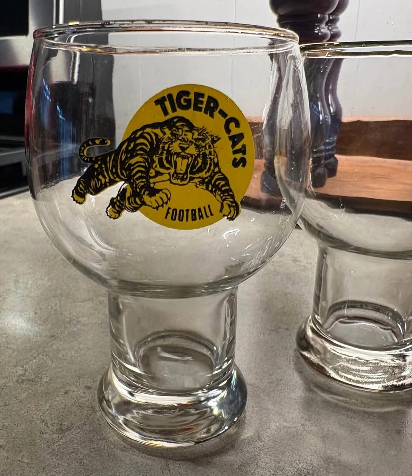 Some minor signs of use, but these glasses are hard to find. A great addition to your collection. A nice gift idea for any diehard Ti-Cats fan. Pickup only in Burlington (Pinedale Ave).