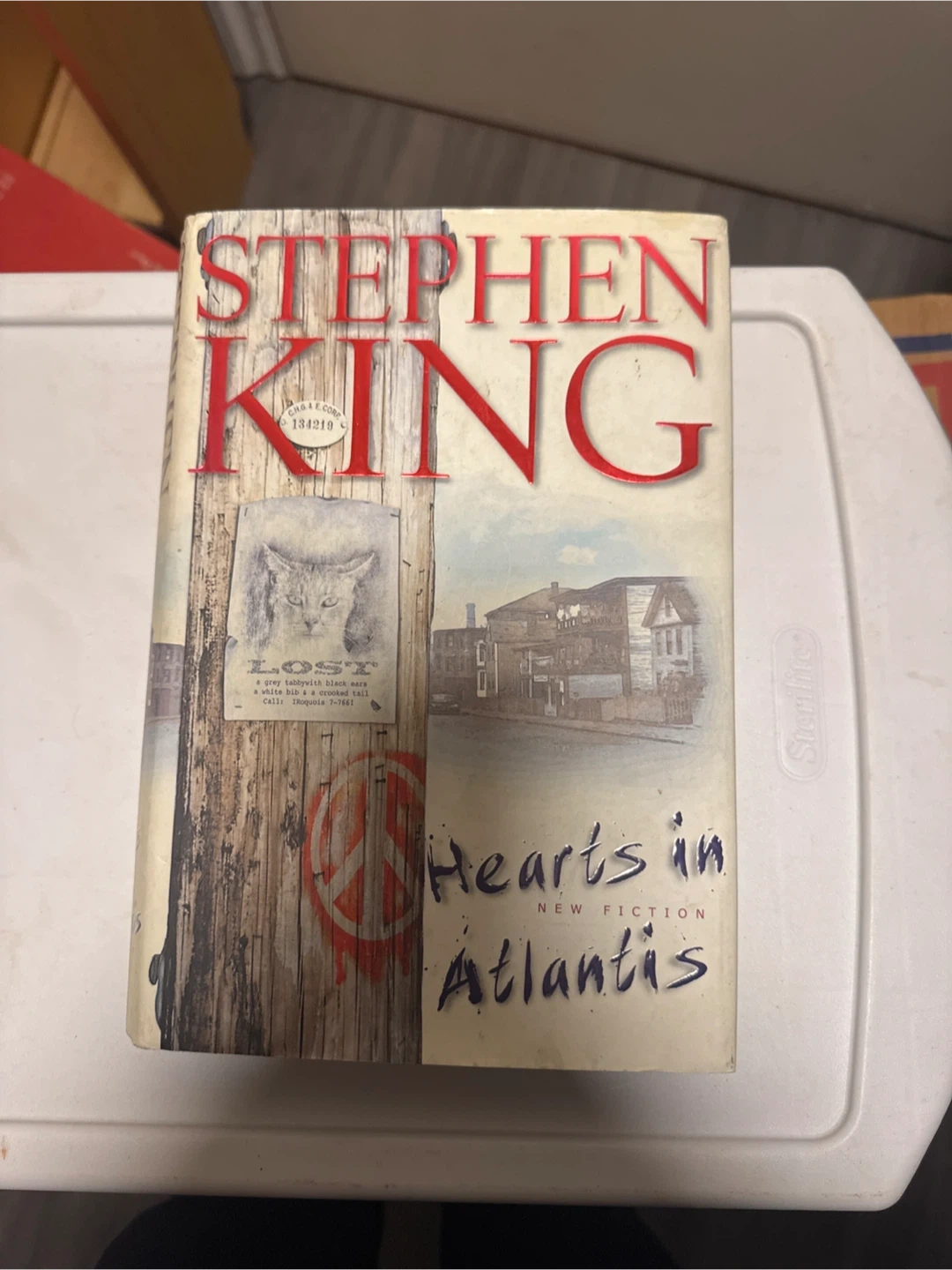 This is Stephen King's 'Hearts in Atlantis'. It's a work of new fiction. The book features a story about a lost cat.