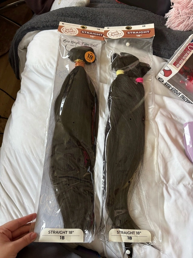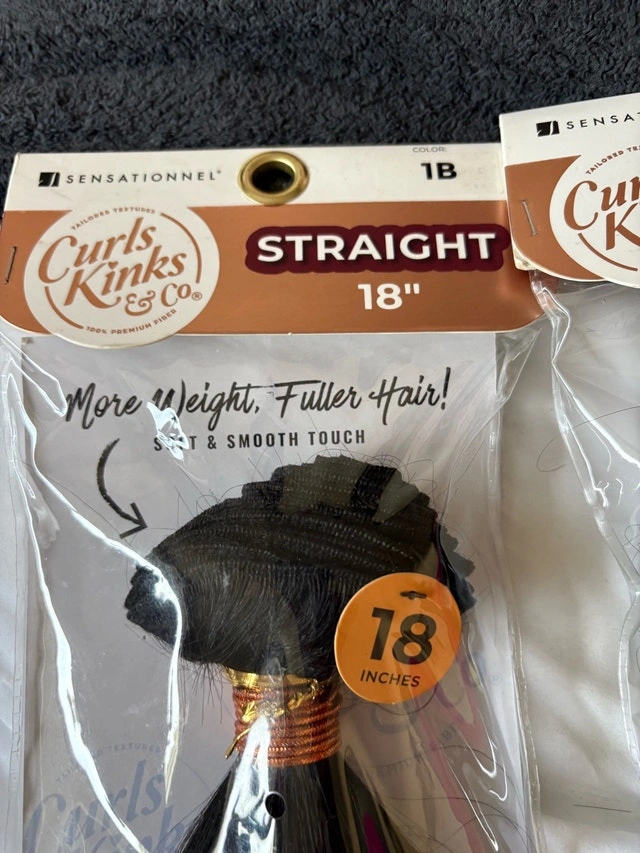 Enhance your style with these Curls Kinks & Co 18-inch straight hair extensions in colour 1B. These extensions are new and come in their original packaging, ready to add volume and length to your hair. Brand: Curls Kinks & Co. Length: 18 inches. Colour: 1B (off black). Style: Straight. If the ad is up, the extensions are available! Cash accepted.