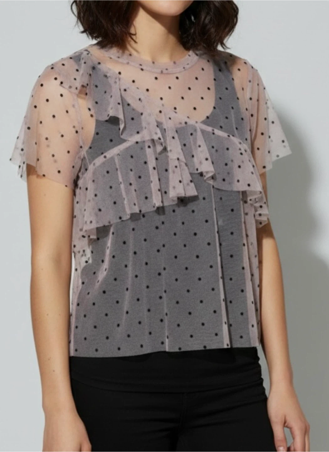 Buy & SellWomen's Sheer Polka Dot Top with Ruffle DetailWomen's Sheer Polka Dot Top with Ruffle Detail$10Sheer top with polka dot pattern. Has short sleeves and a ruffled overlay. Great for layering.ConditionNewSizeSmallBrandUnknown WHERE TO MEETDownsview Park/StationView MapSELLERverifiedSofiaDownsview1014 reviews0 chats·0 favorites·21 viewsSEND CHAT TO SELLERHi Sofia! I’m interested in your listing.Hi Sofia! I’m interested in your listing.Get the Karrot app to chatSign In to chat