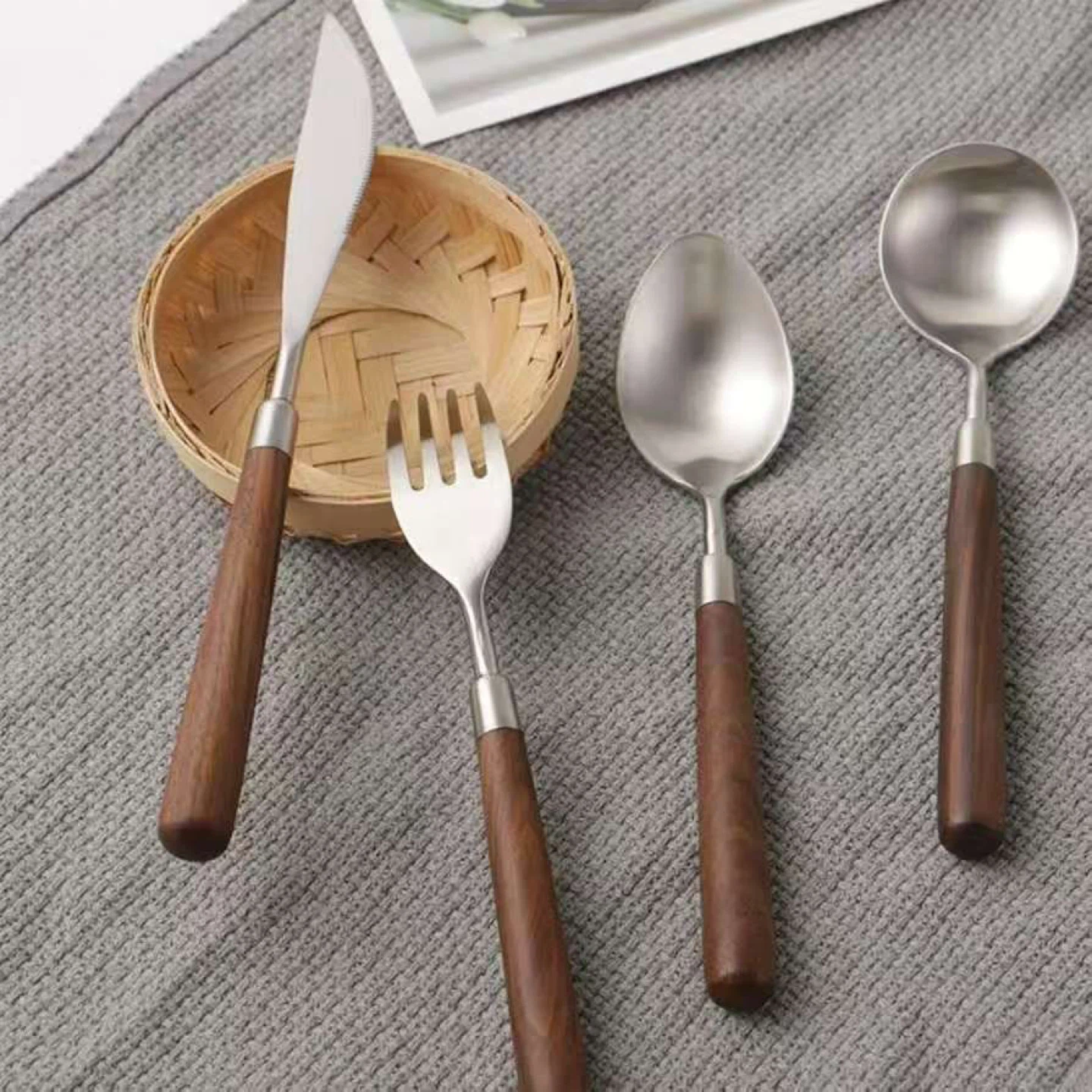 Cutlery Set - Stainless Steel & Wood Handles