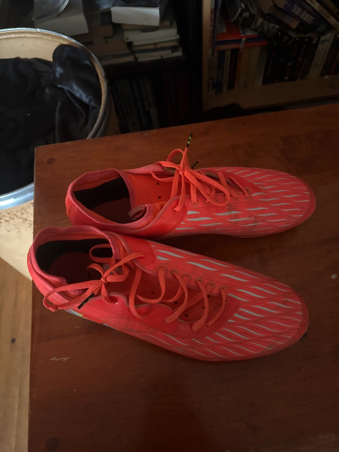 Bright coral Adidas X Speedportal.3 FG soccer cleats in a size 8. Features a lightweight synthetic upper with dynamic striations for improved agility. Suitable for firm ground pitches. Get ready to fly on the field! size 11