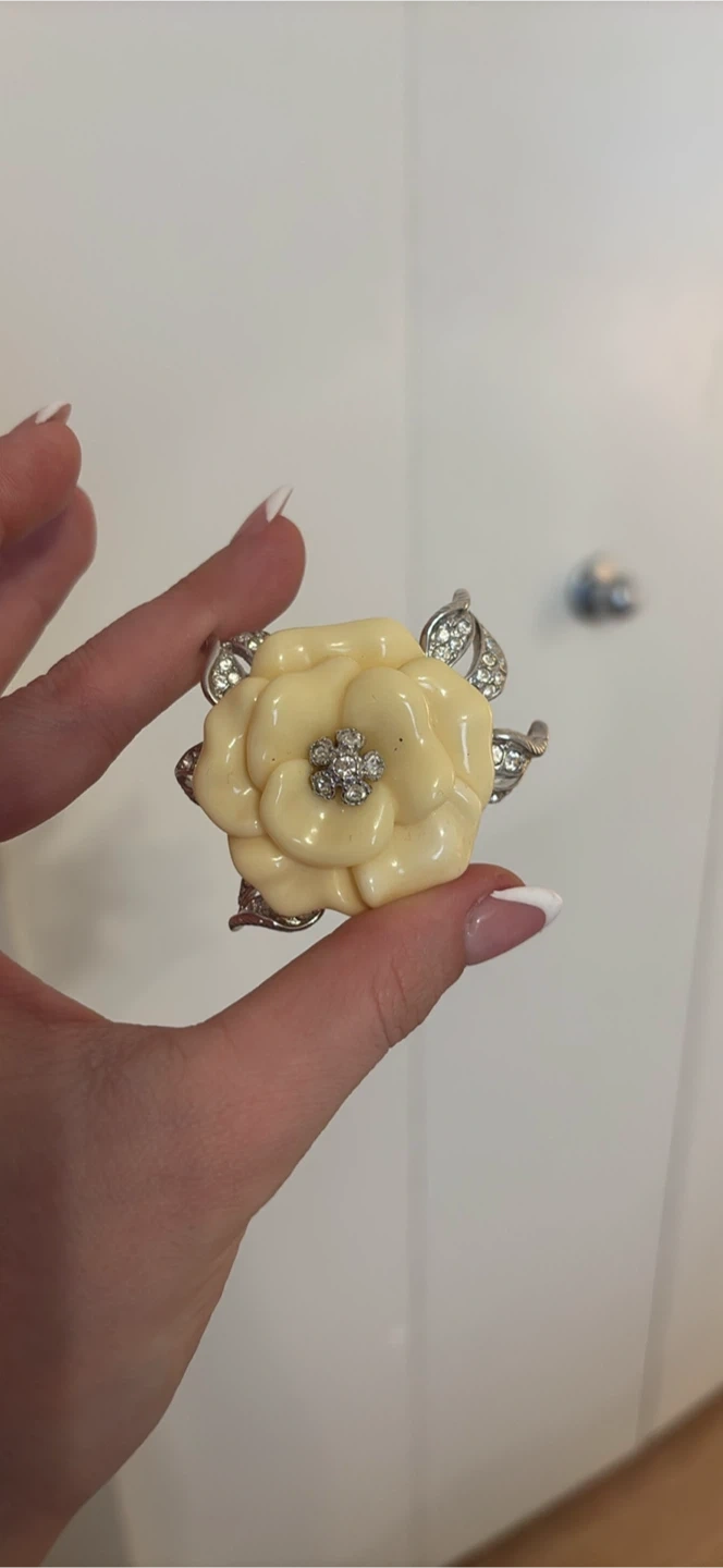 A lovely brooch shaped like a yellow camellia flower with sparkling rhinestone accents. The clasp on the back is secure. This accessory adds a touch of elegance to any outfit! Pick up bridgeland NE 🤗 Check out my other listings ❤️ Delivery available for a fee or free delivery within Calgary when 150 or more is spent 💃 Cash or email transfer accepted 💰 Smoke free and pet free home❌🙅