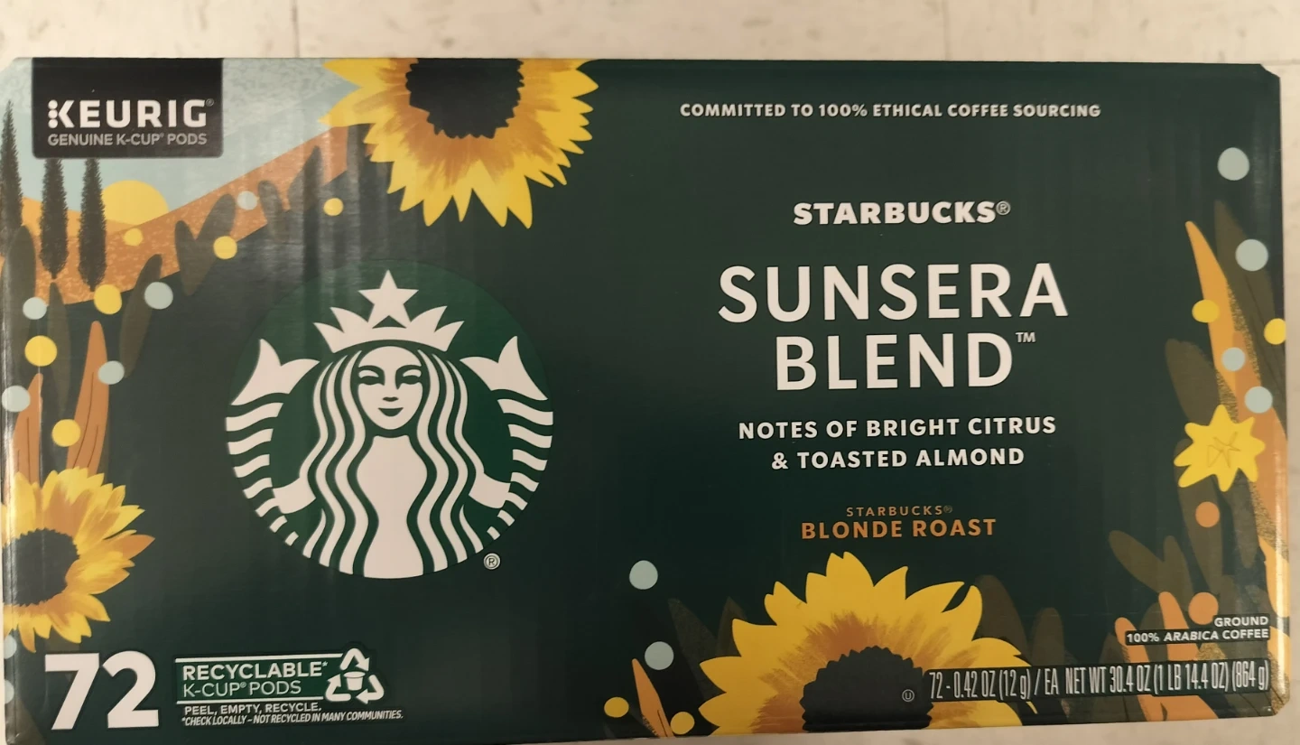 Buy & SellStarbucks Sunsera Blend Blonde Roast K-Cup Pods - 72 CountStarbucks Sunsera Blend Blonde Roast K-Cup Pods - 72 Count$45This box contains 72 Starbucks Sunsera Blend K-Cup pods. It's a blonde roast with notes of bright citrus and toasted almond. These are genuine K-Cup pods.WHERE TO MEETSt.Helens churchView MapSELLERverifiedMichaelLindenwood1275 reviews0 chats·0 favorites·2 viewsSEND CHAT TO SELLERHi Michael! I’m interested in your listing.Hi Michael! I’m interested in your listing.Get the Karrot app to chatSign In to chat