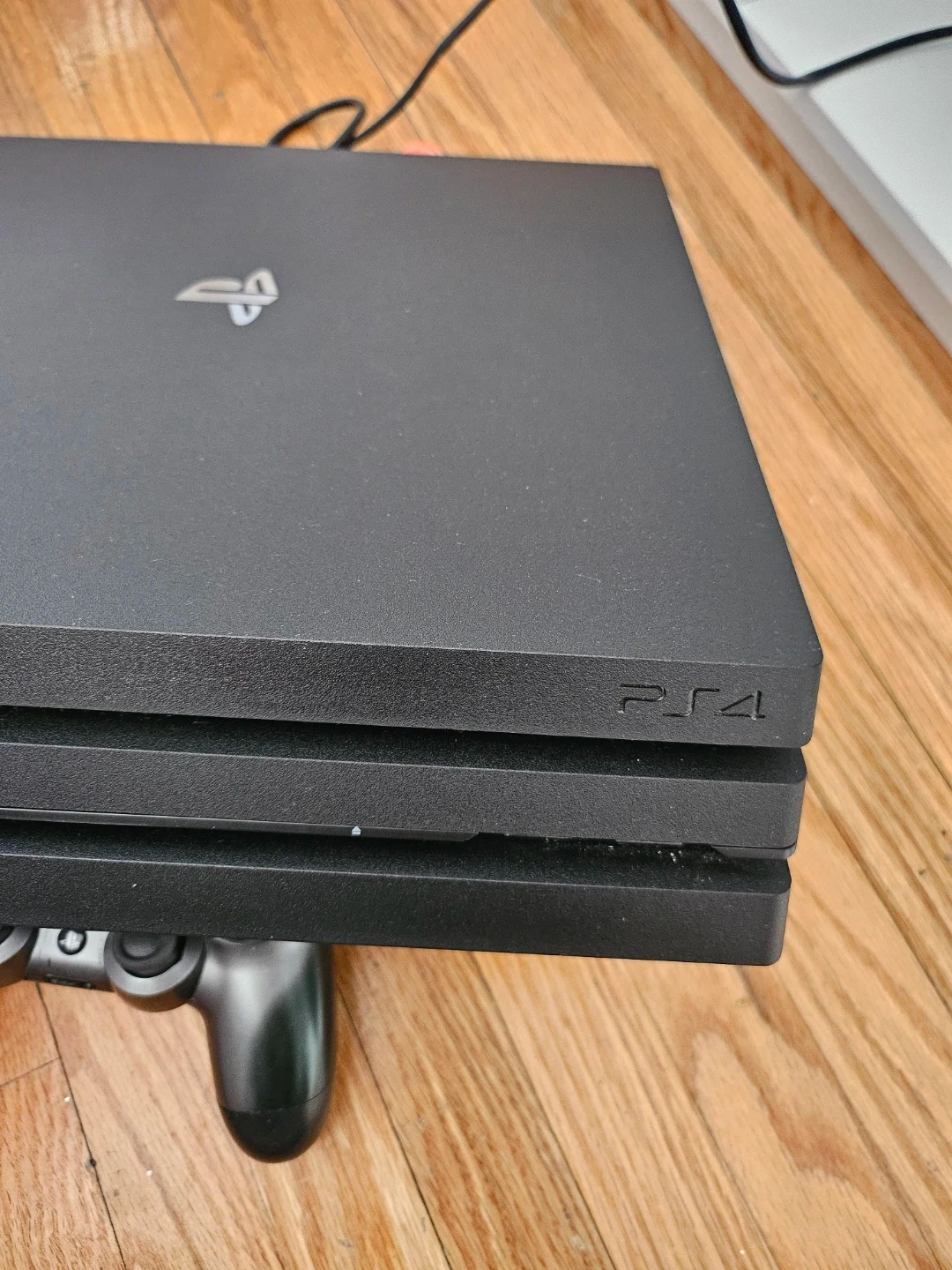 Selling a Sony PlayStation 4 Pro with 1TB of storage. It comes with one DualShock 4 controller. This console is black and supports 4K gaming.